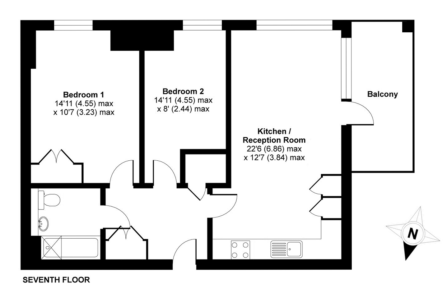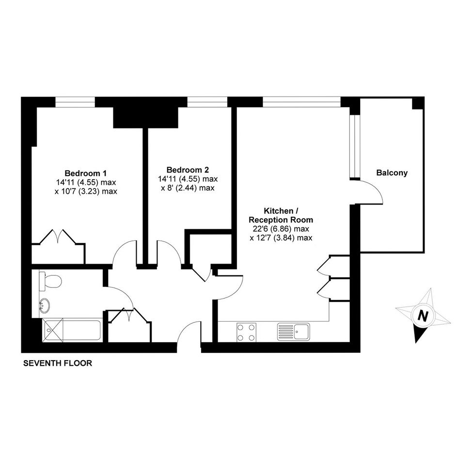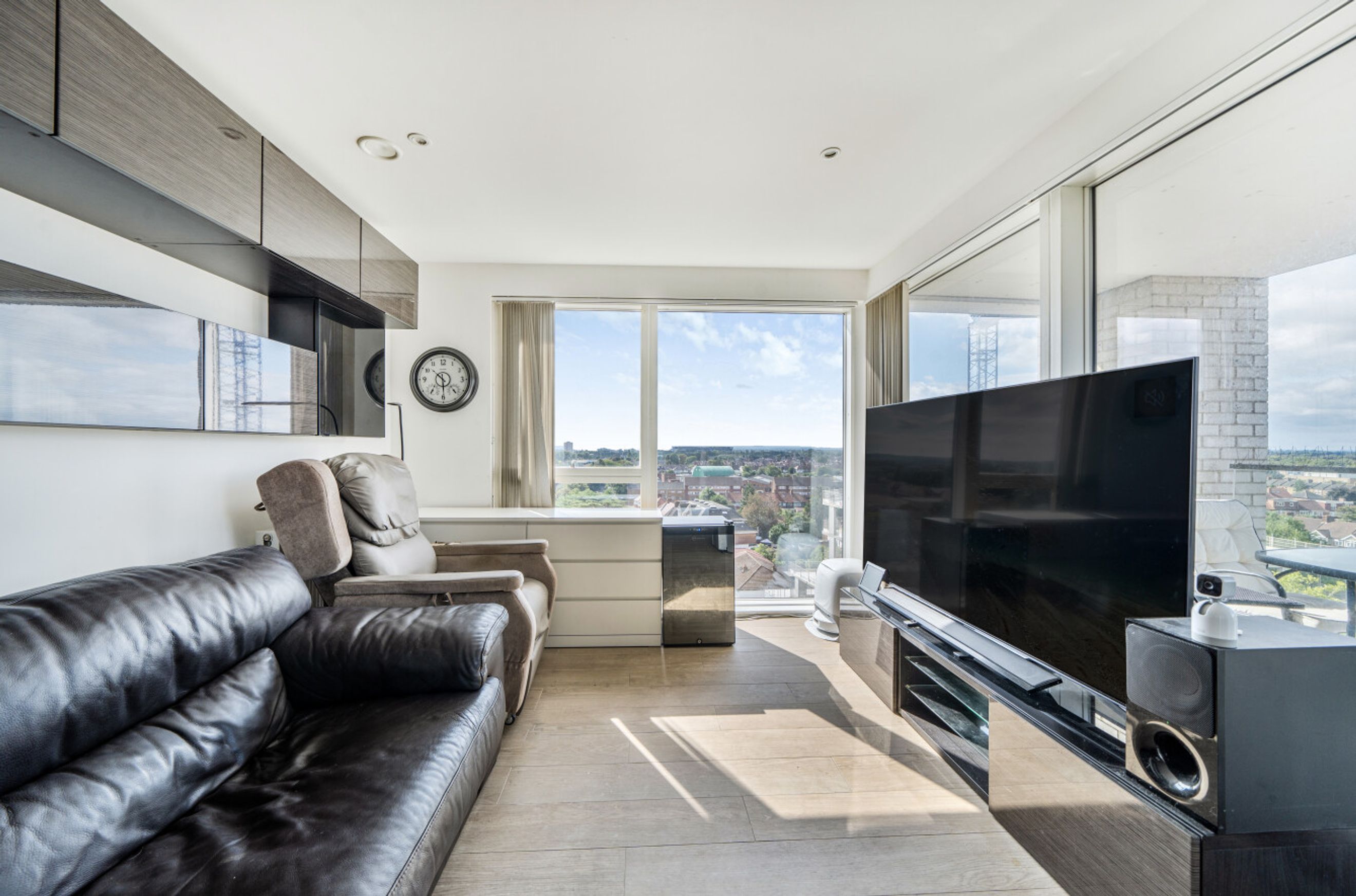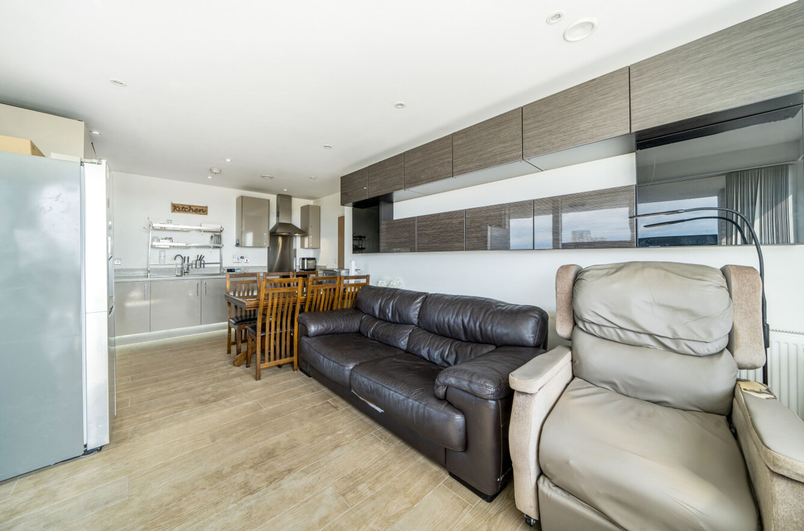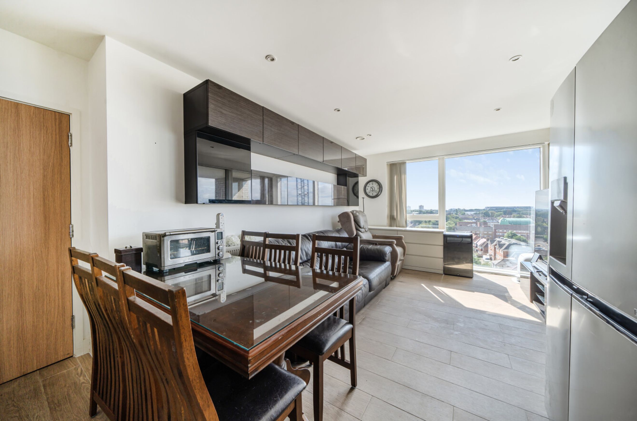 This predominantly south-facing, two-bedroom apartment is on the top (seventh) floor of a modern development and features a dual-aspect reception room with a stylish open-plan kitchen and a balcony which offers a panoramic view of the surrounding area. There is a fitted wardrobe in the larger bedroom plus additional storage in the entrance hallway. Considerable thought has been given to energy-efficiency with high performance double glazing to all units and a communal heating and hot water system. Hounslow East Underground (Piccadilly Line) and Isleworth Station (South West Trains services between Weybridge and London Waterloo) are only a short walk away. The Treaty Shopping Centre and a wide selection of other stores are also within easy reach. The apartment comes with use of a parking space.