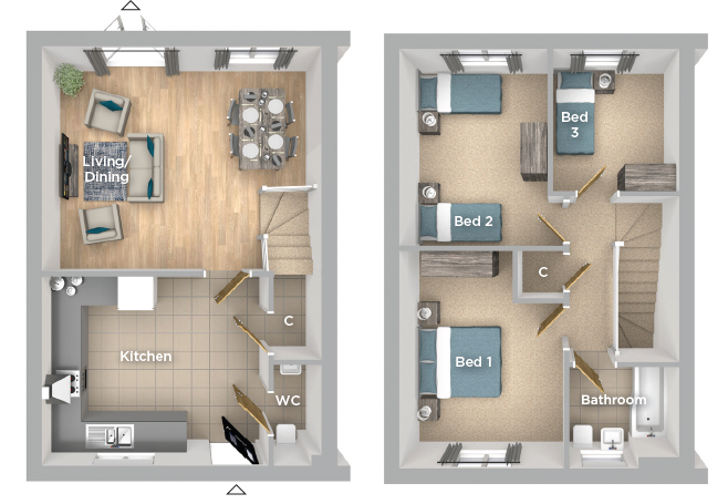 The Heron is a stylish three bedroom semi-detached home comprising of a well appointed modern kitchen layout to the front of the property. A spacious living area with access to the turfed rear garden.