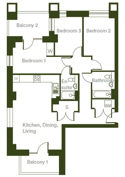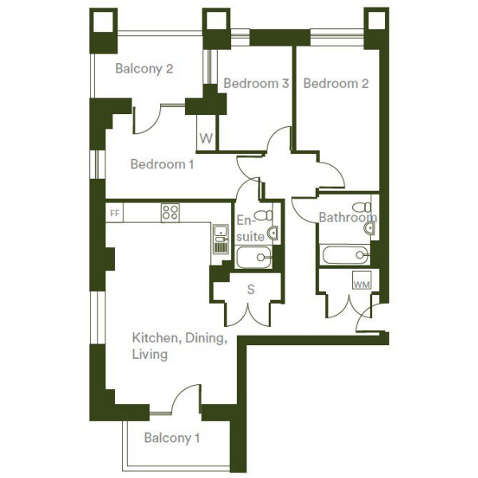 3 bedroom 4th floor apartment offering 88 sq.m of internal floor area with two balconies. Contact a member of our sales team now to view our show home.