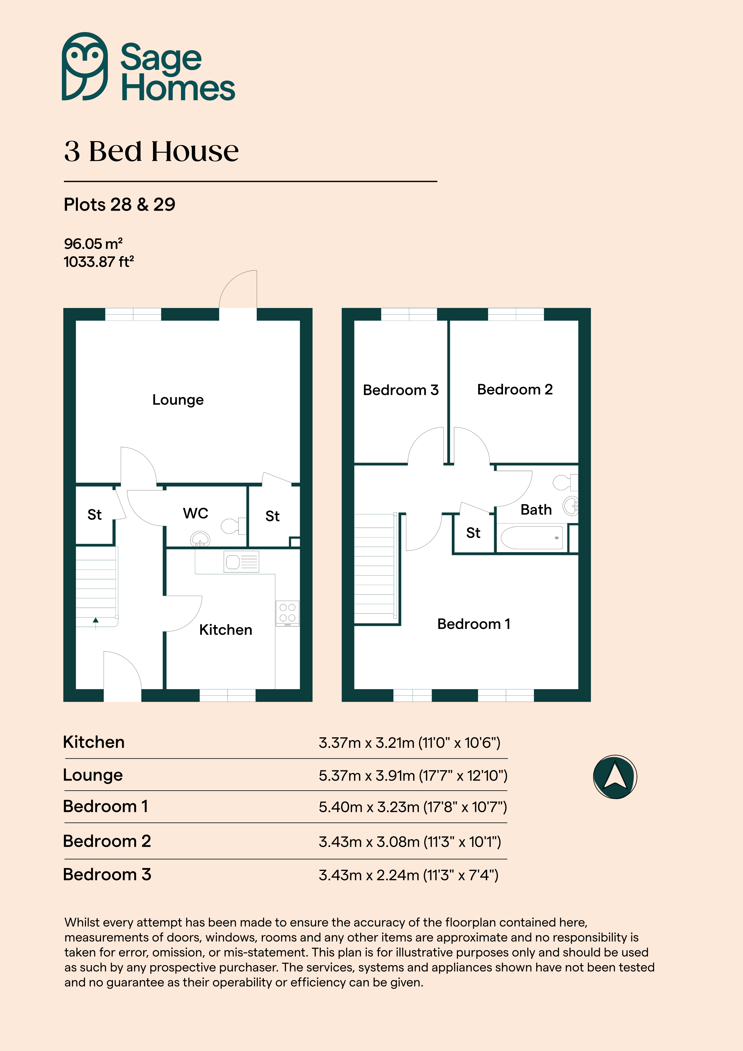 This new 3 bedroom semi-detached house opens into the spacious hallway. To one side you have the separate kitchen and to the other the stairs to the first floor, with a storage cupboard and WC also leading off. The rear of the ground floor presents the lounge / dining area with door to garden.