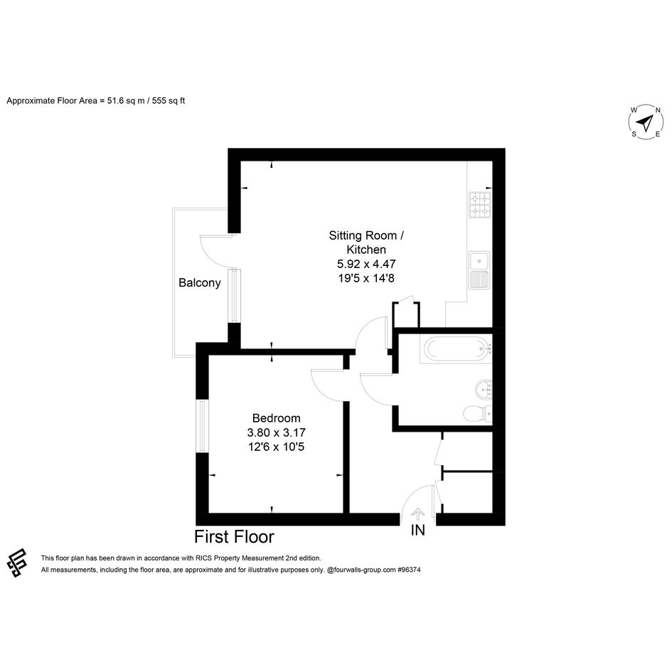Flat 5 Harrington House is a well-presented one-bedroom apartment situated on the first floor of a modern five-storey block built in 2007. The property benefits from secure door entry access and offers a generous gross internal floor area of 51.6 sqm.
