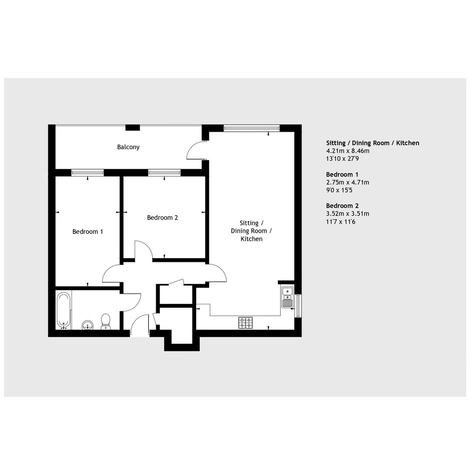 Featuring an open-plan living area with large windows that look out onto the shared garden area and a door that leads out to your balcony. The kitchen has an integrated oven and hob.