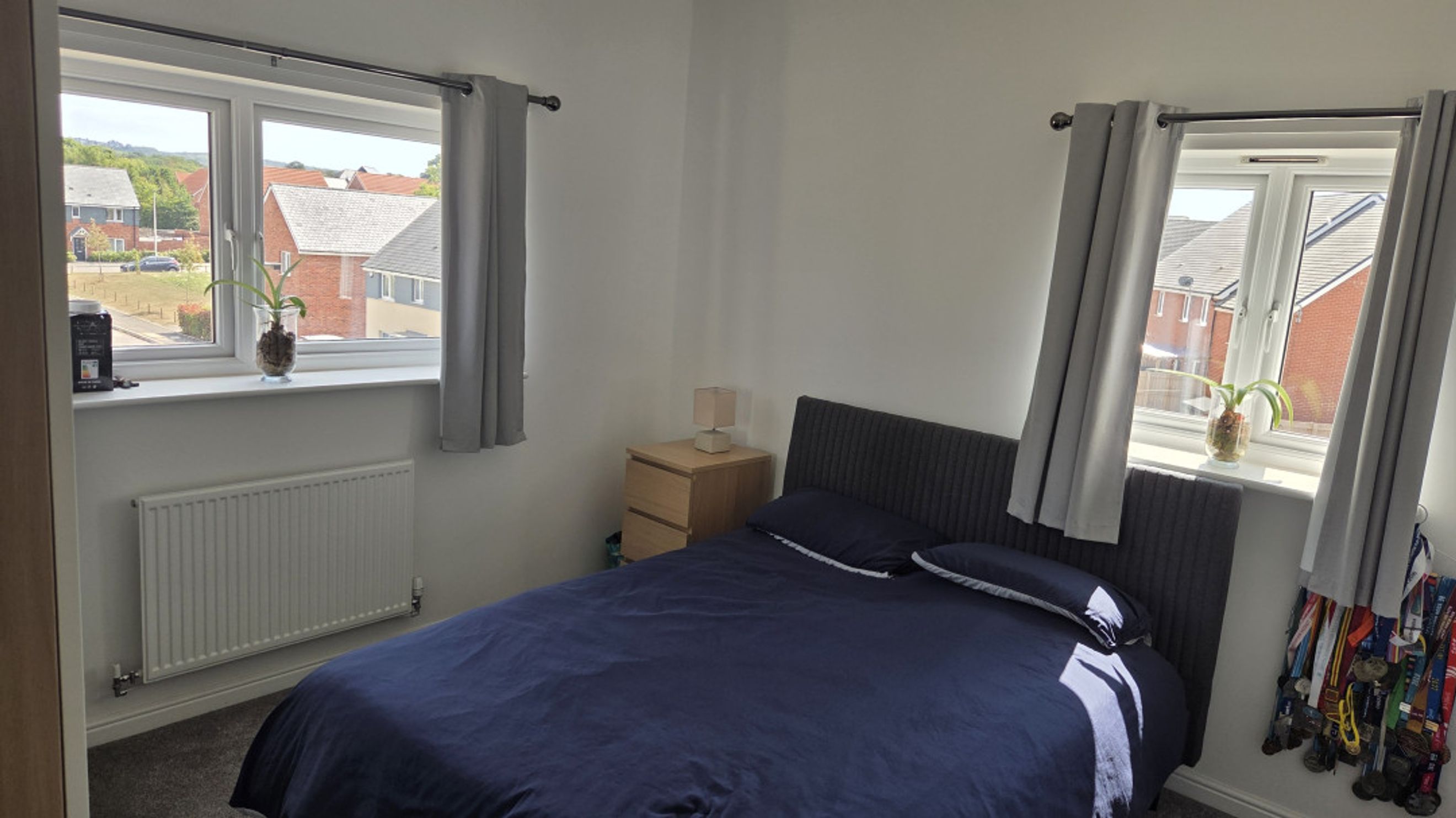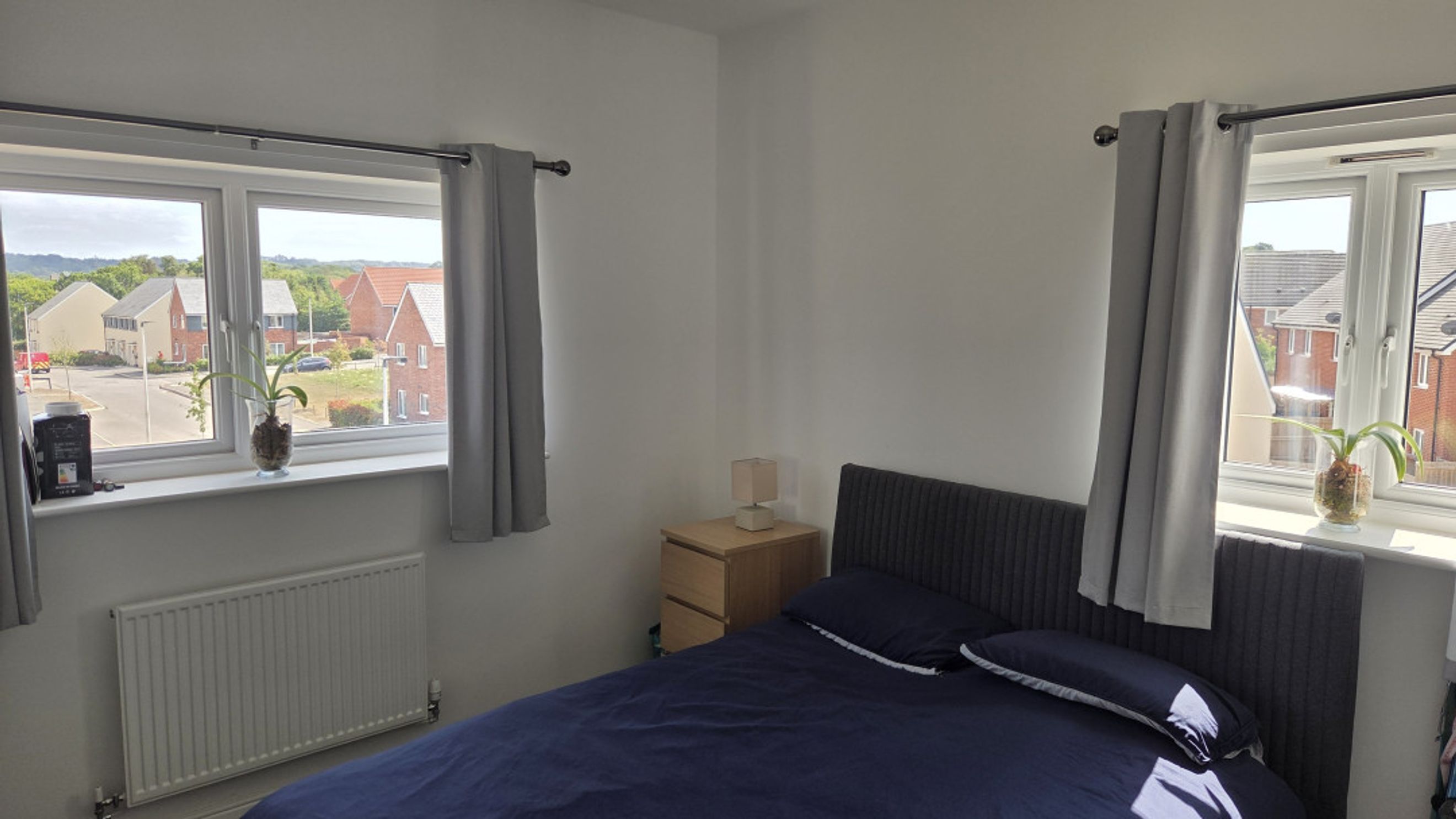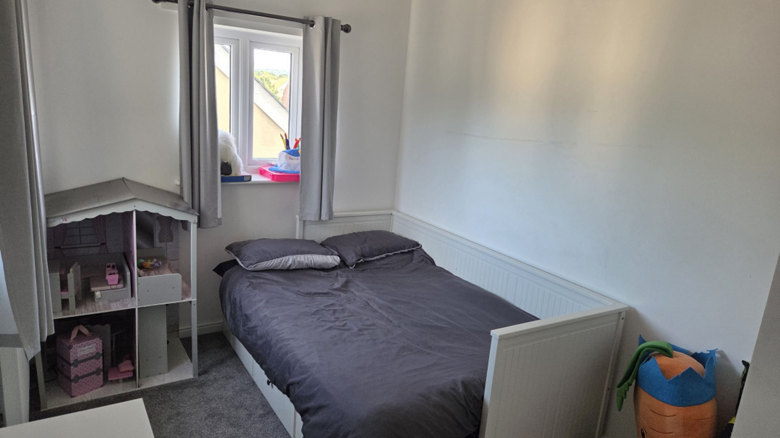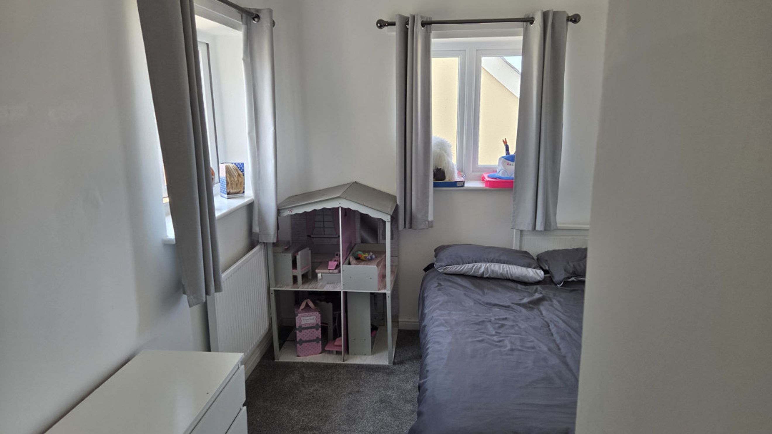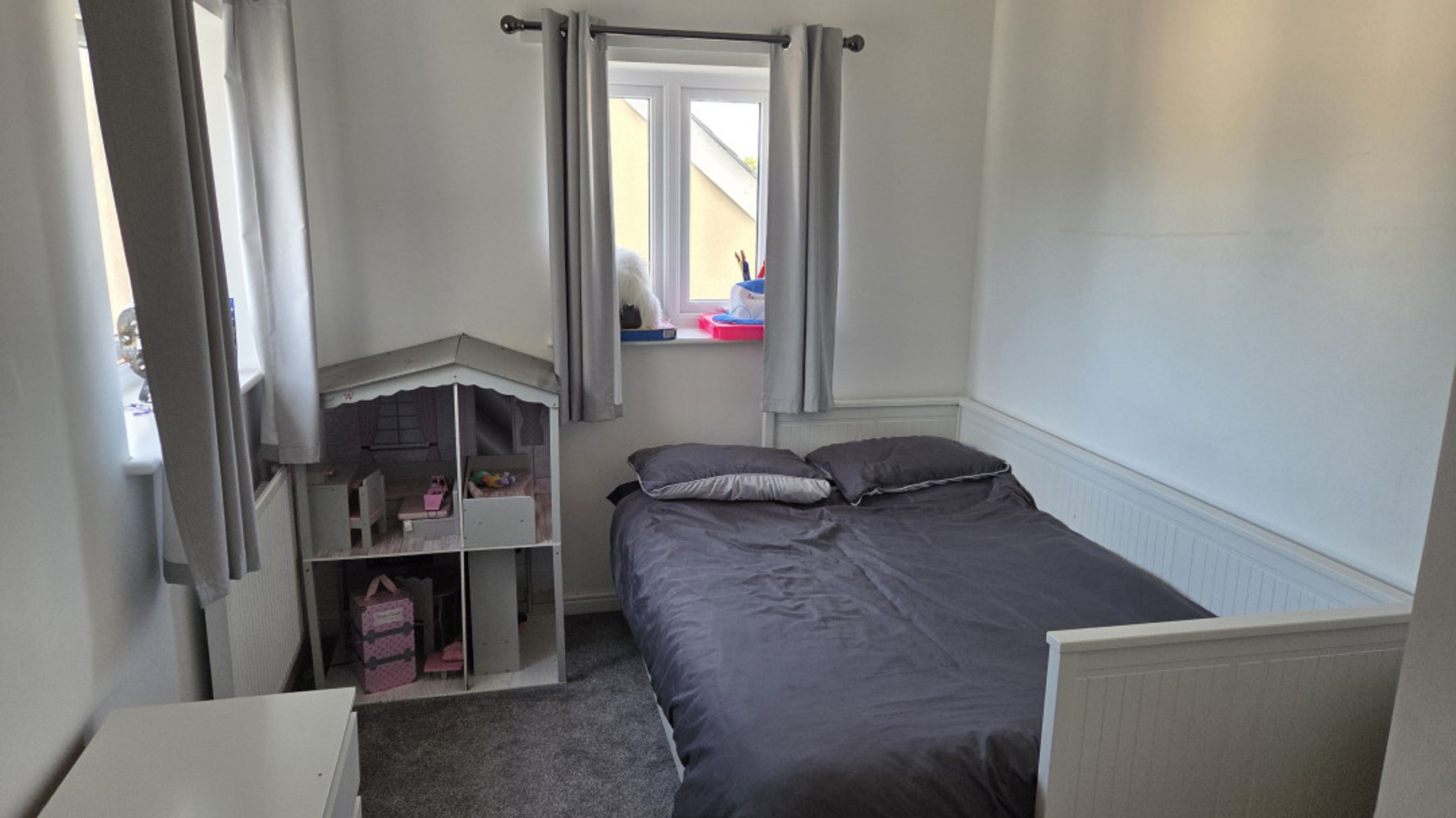 Both bedrooms are generously sized and fitted with plush grey carpeting, offering a cosy and inviting atmosphere.