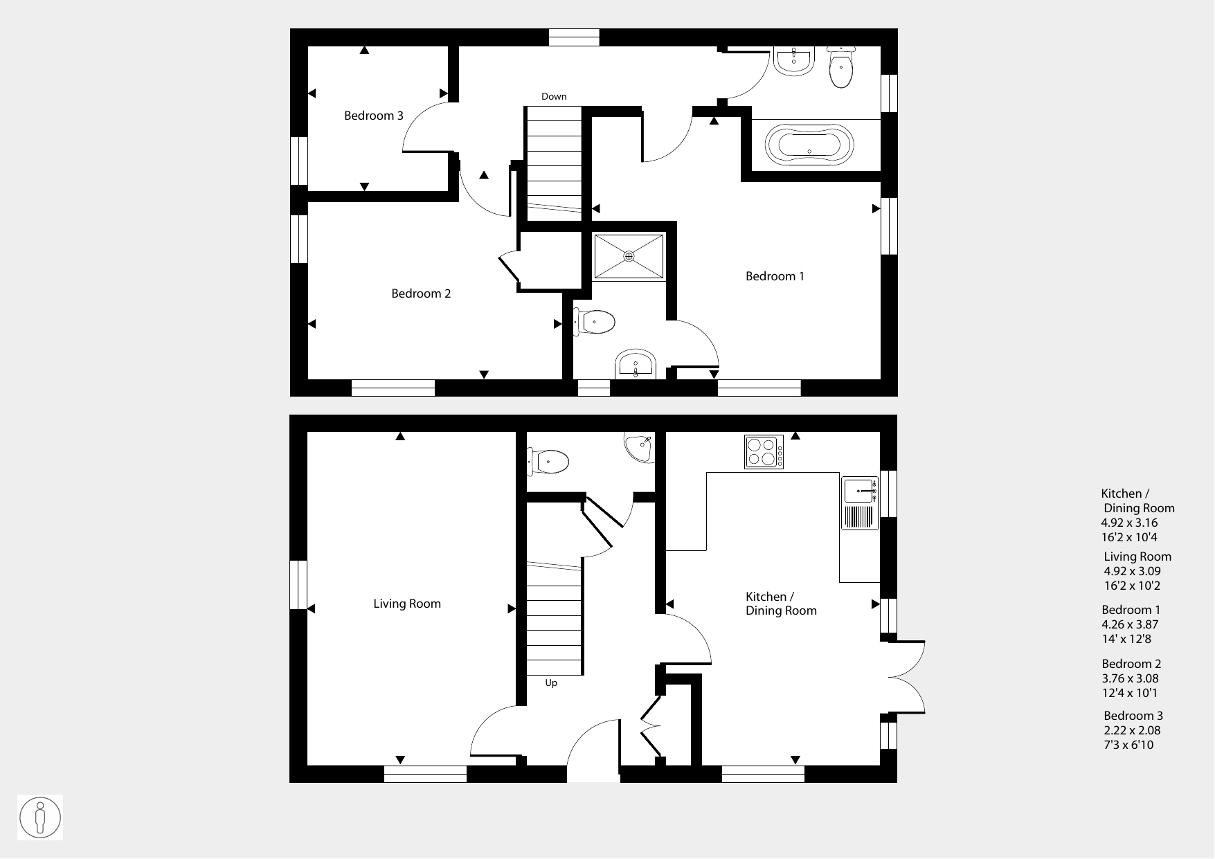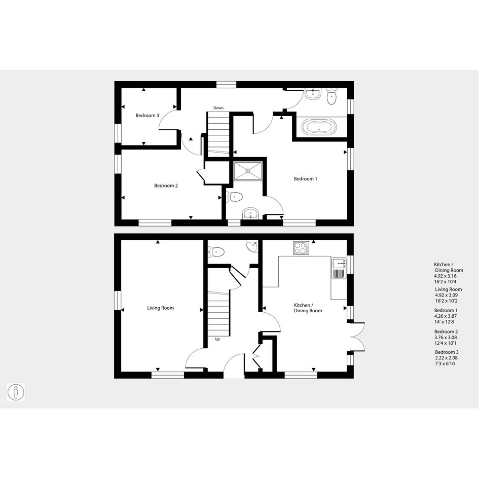 Upstairs, there are three bedrooms, with an ensuite to the master. The bathroom has a modern, white suite. You'll also have a turfed back garden and two parking spaces.
