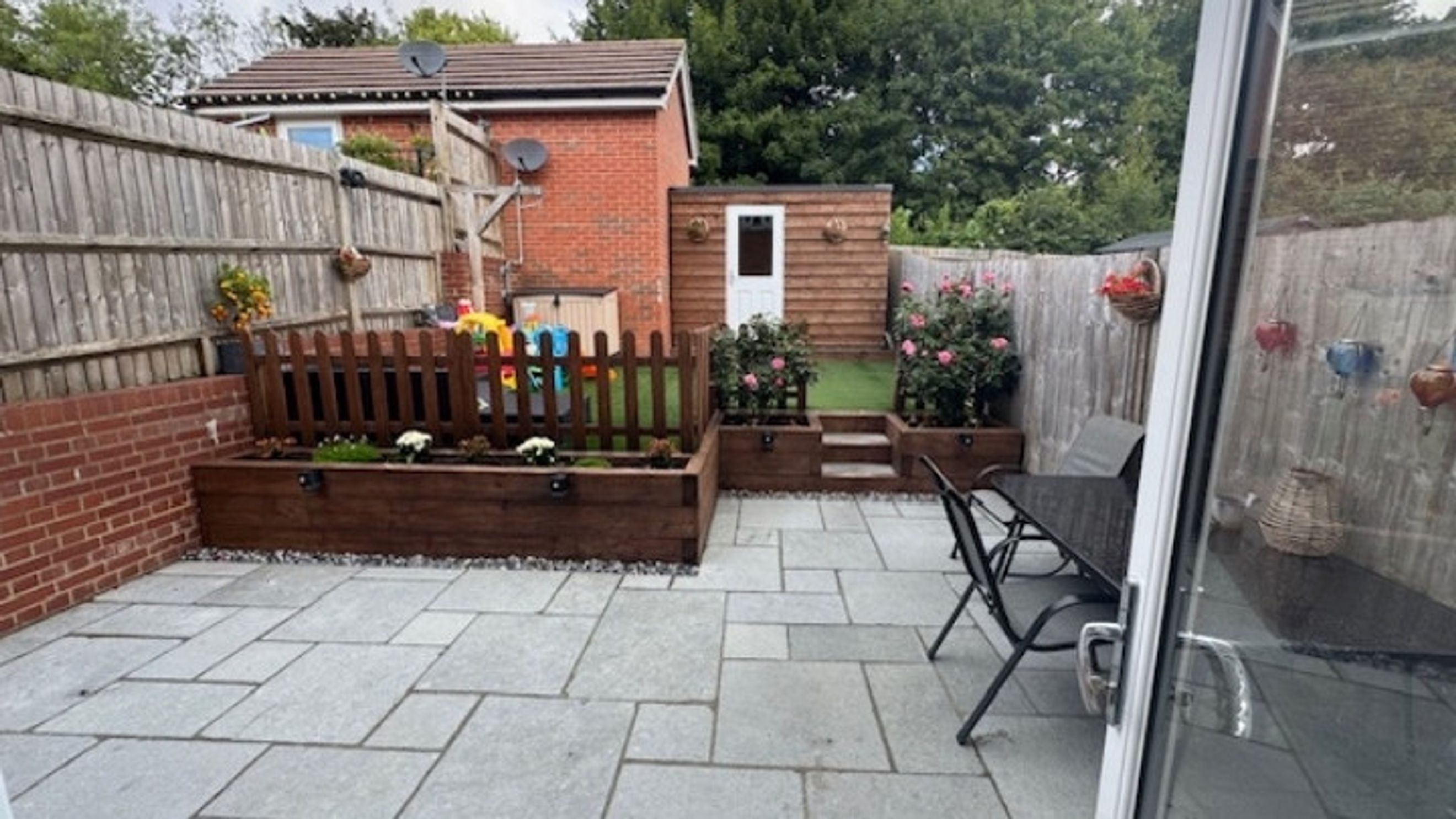 Outside, enjoy a beautifully maintained south-facing rear garden with a lawn, flower beds, and a patio-ideal for summer gatherings. A shed with electric supply adds extra utility, and the property benefits from two allocated parking spaces.