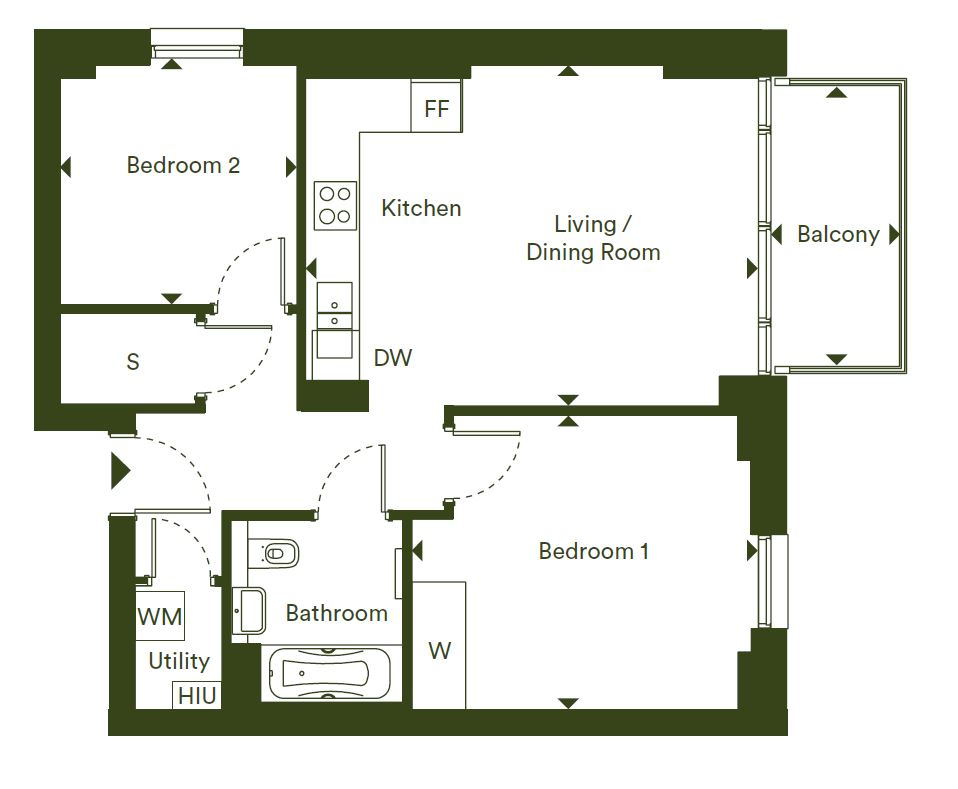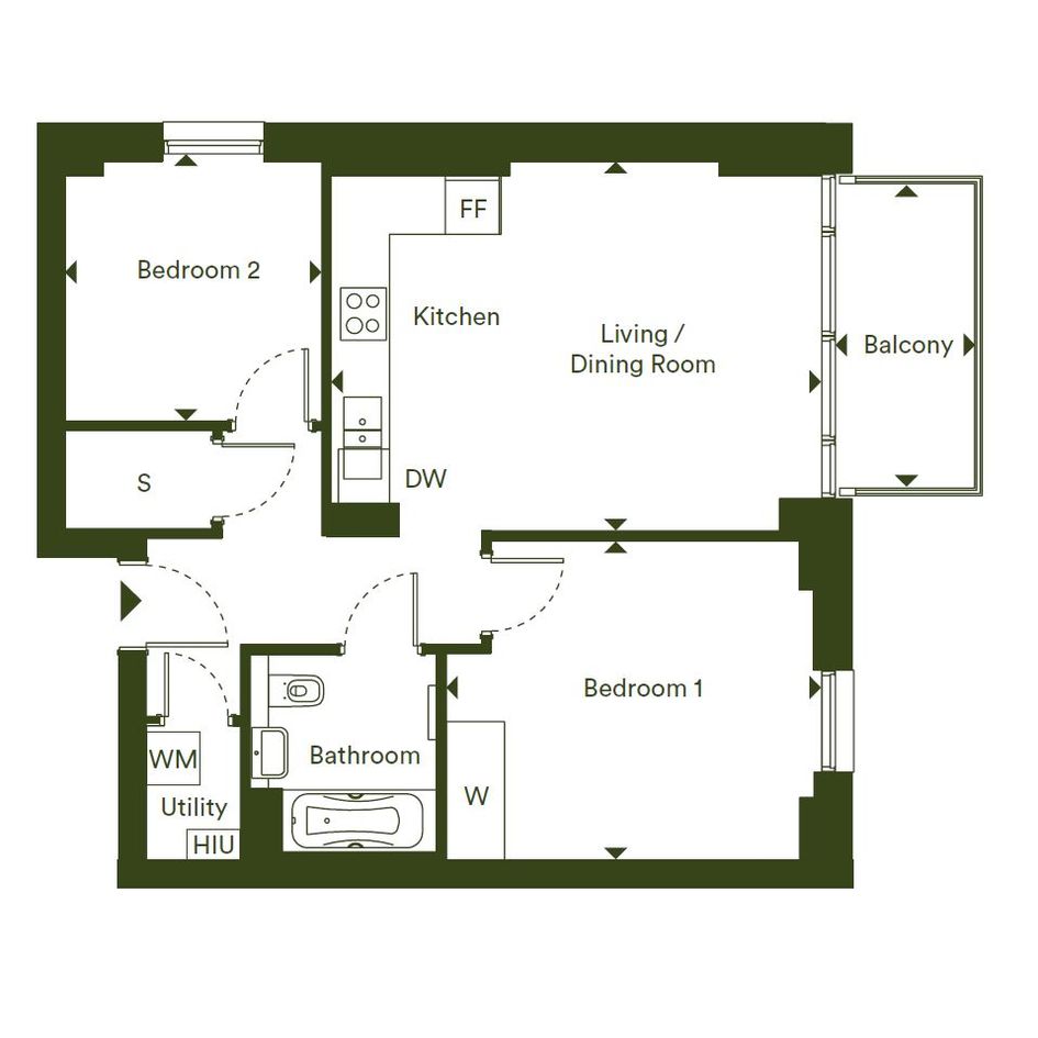 Jet House - Plot E2.08.05 is a 2 bedroom eighth floor apartment offering 61sq.m of internal floor area with outdoor space.