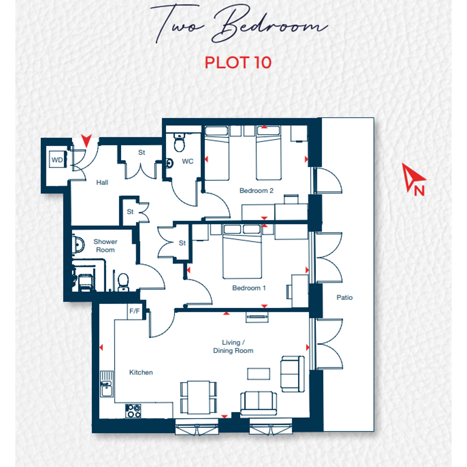 A spacious, wheelchair adapted apartment with two double bedrooms. located on the ground floor, featuring it's own private entrance. The apartment boasts an open plan kitchen, dining and living area, designed for comfort and functionality. It also benefits from a patio area spanning across the living area, and both bedrooms.