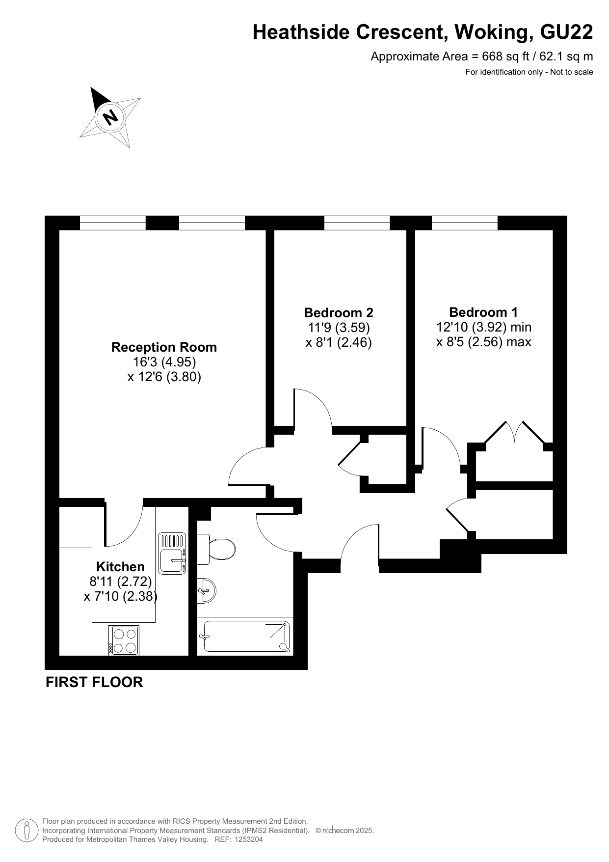 The property features an entrance hall, reception room, separate kitchen, two bedrooms, and one bathroom.