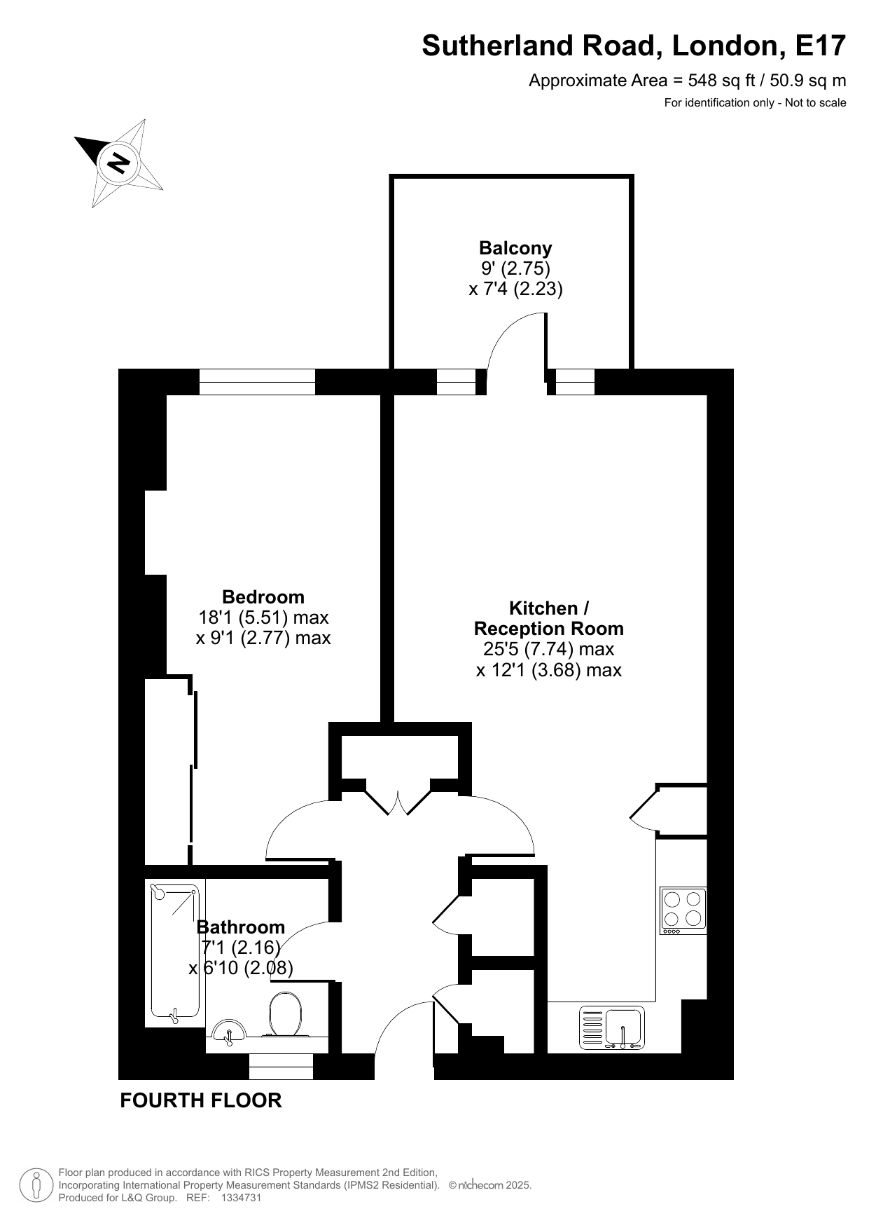 Offered for sale is this well presented one bedroom fourth floor apartment. Accessed via a well kept communal entrance, there is a large, open-plan kitchen/living/dining space leading directly on to a balcony to the rear. There is a double bedroom, in addition to a contemporary family bathroom.