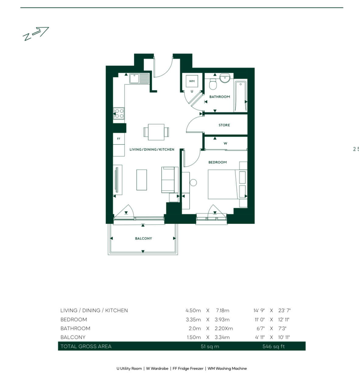 The apartment features a bright, open-plan kitchen, living and dining area, offering far-reaching views across Wembley. The contemporary kitchen is fully fitted with integrated appliances and ample worktop space, ideal for everything from quick weekday meals to dinner with friends.