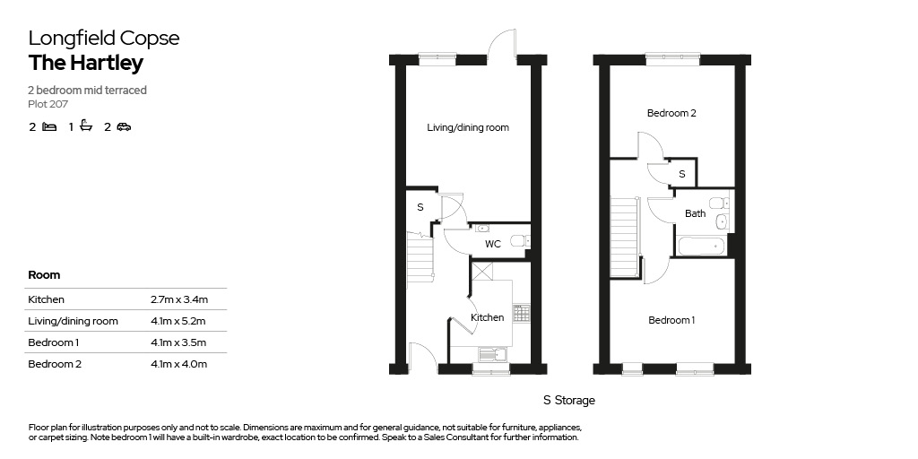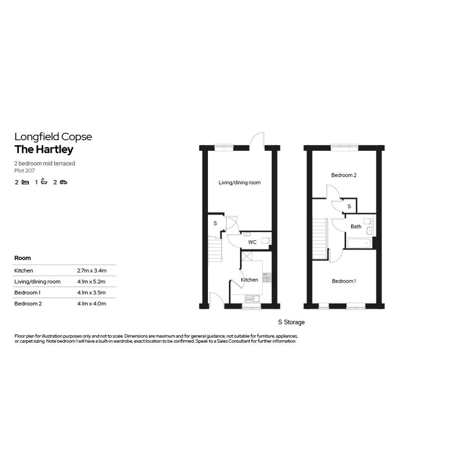 The two bedroom Hartley is perfect for couples, families or downsizers. On the ground floor, you will find a separate kitchen to the front of the property and a spacious living/dining room towards the rear of the property. There is also a downstairs WC and storage cupboard.