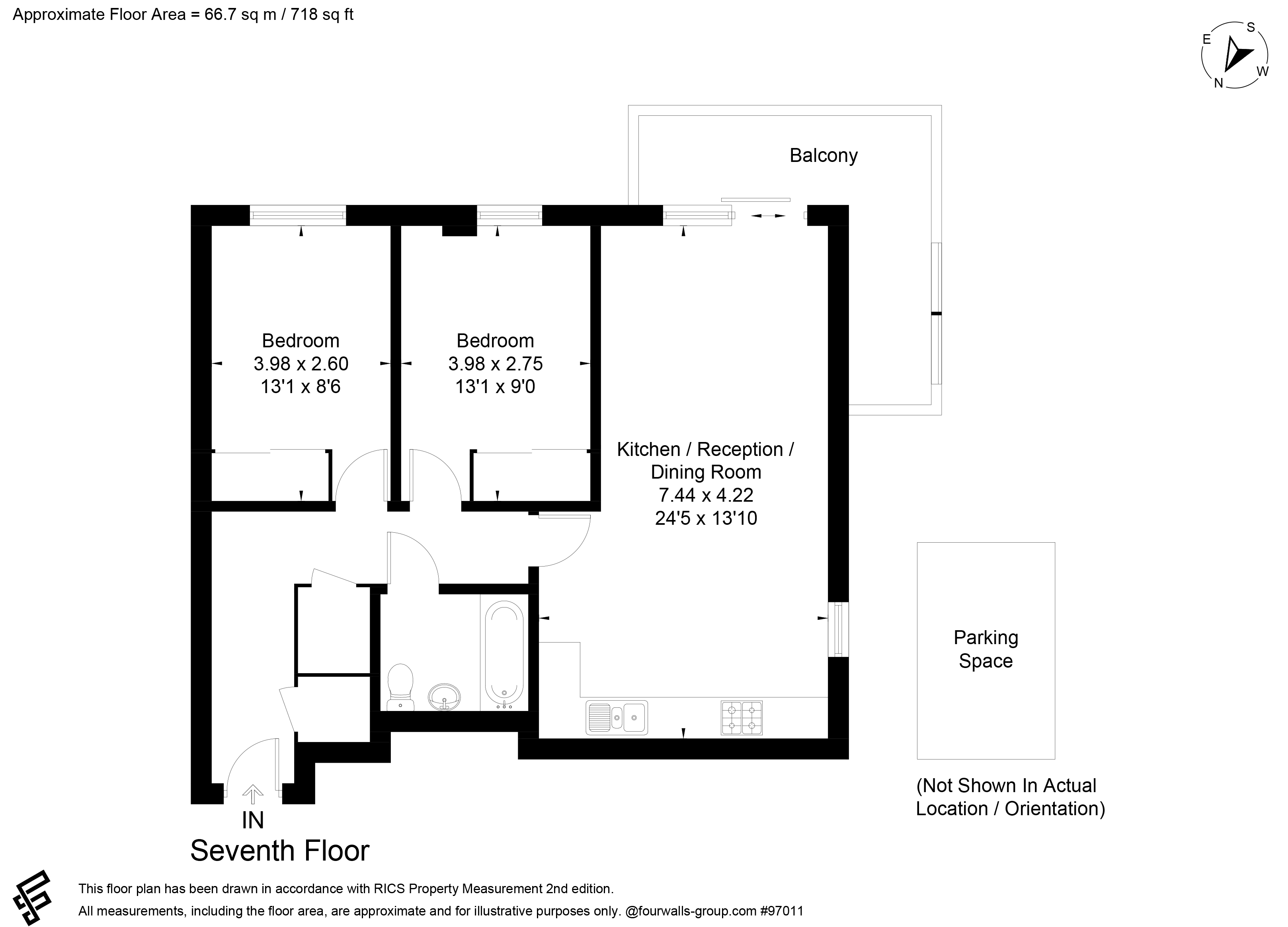 This bright and spacious two double bedroom apartment located on the 7th floor. This apartment features a welcoming hallway with integrated storage, leading to both bedrooms with build it wardrobes. The bathroom is finished with contemporary tiling and includes a bath with overhead shower, WC, sink, and heated towel rail.
