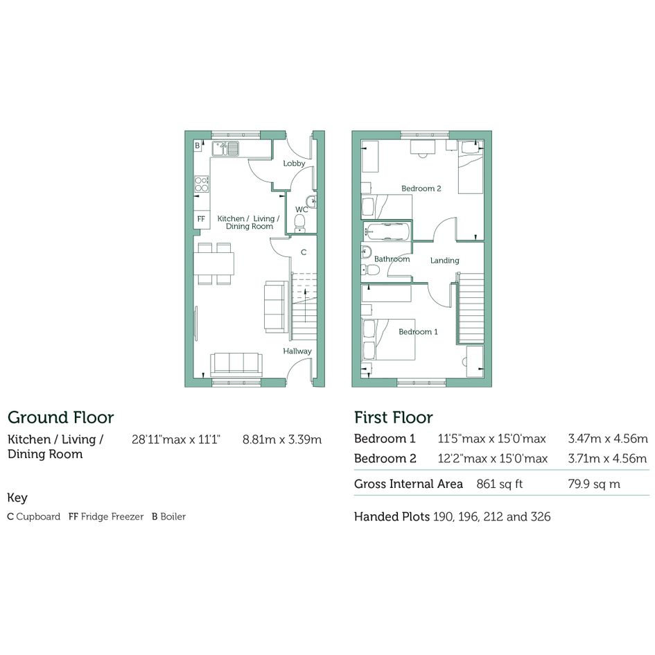 The two bedroom Dawson opens into an open plan kitchen/dining/living room, leading through to a lobby with a door to the turfed rear garden. The ground floor is also home to a cloakroom and handy storage cupboard.