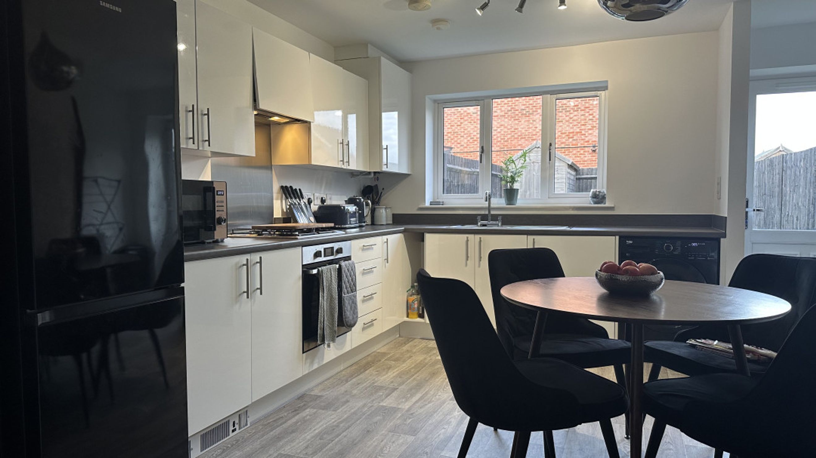 Outside, enjoy a south-facing garden with a decked area and newly-fitted low-maintenance artificial grass, ideal for summer gatherings or quiet evenings. The property also benefits from two allocated parking spaces, ensuring convenience for residents and guests alike.