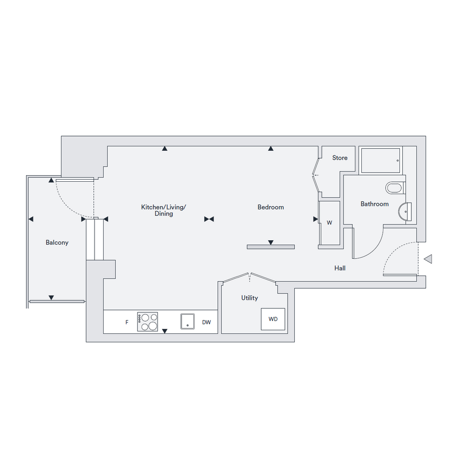 Manhattan Studio, 1 bathroom, 3rd floor apartment offering 38.8 sq.m of internal floor area with outdoor space. Bosch integrated appliances and ample storage available.
