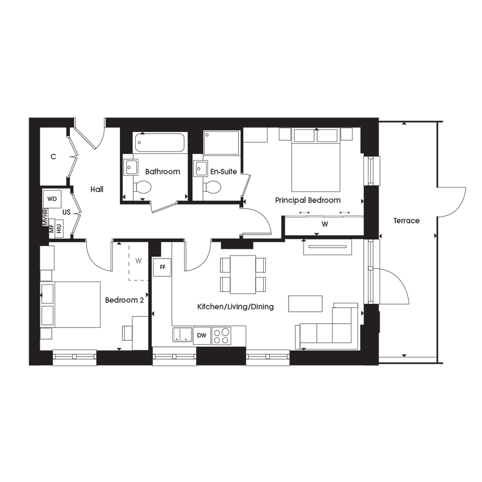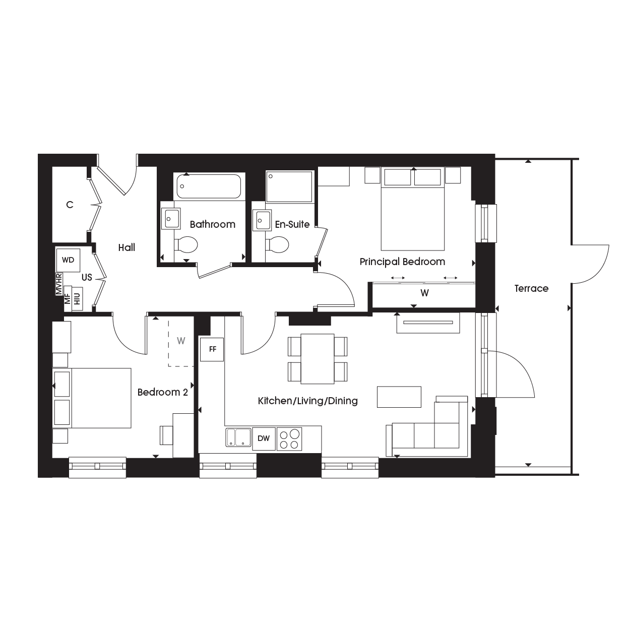 A stunning collection of 1, 2 and 3-bedroom apartments – all with their own outdoor space – have been individually designed to maximise light and space. Flexible, sustainable and with a cool, contemporary finish, these homes are ready for you to start life’s big adventures.