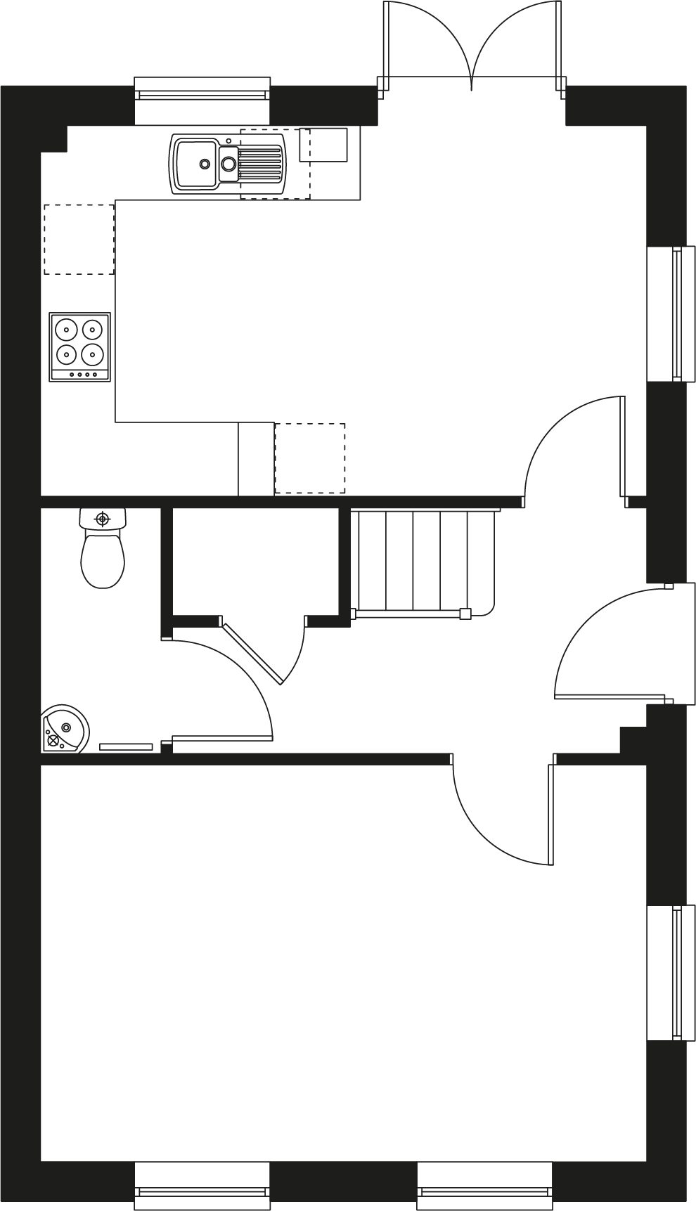 It features a contemporary layout with a spacious kitchen/dining area, double doors to a turfed rear garden, a downstairs WC and front aspect kitchen. The entire property features modern fixtures and fittings. Upstairs you'll find two double bedrooms and one single, a family bathroom and storage.