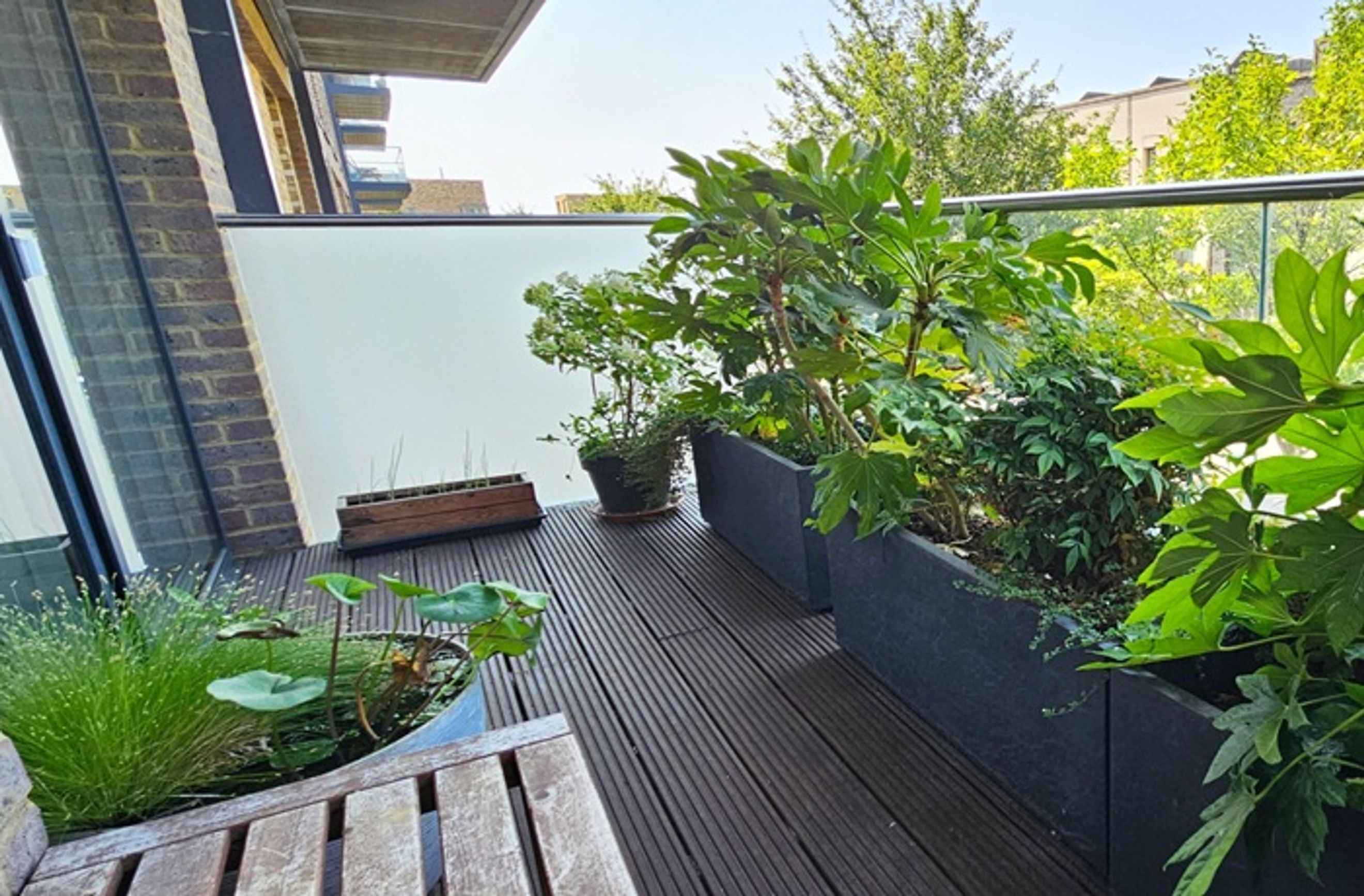 The podium garden is accessible step free on this level too. The flat itself has very wide doorframes for a wheelchair user.
