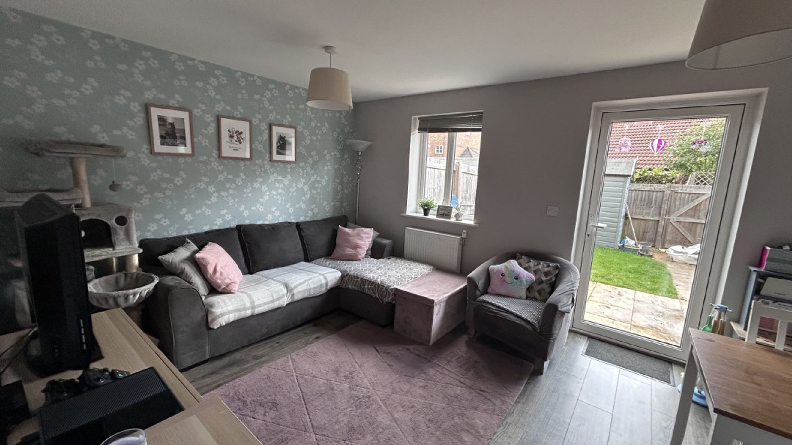Upstairs, two generous double bedrooms are separated by a well-sized family bathroom, creating a balanced layout ideal for family life. Outside, the rear garden features gated access, a handy shed, and a charming patio area-perfect for summer evenings or weekend play. Allocated parking for one vehicle completes the picture.