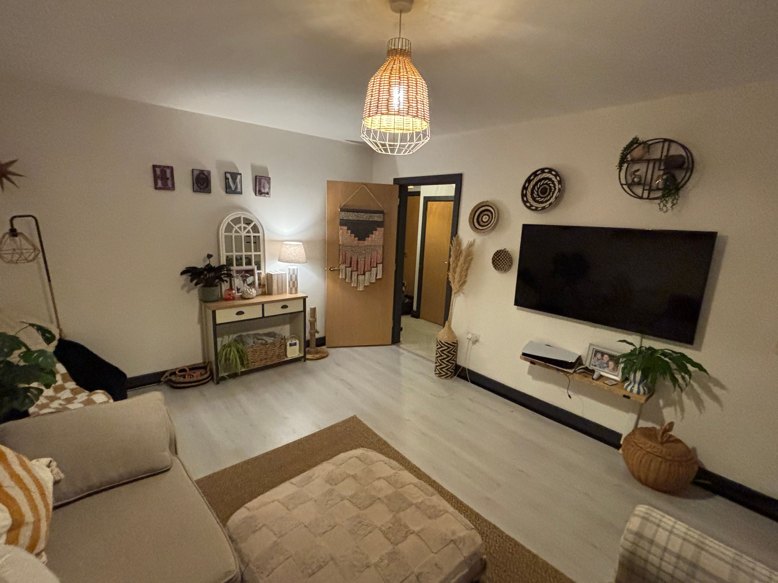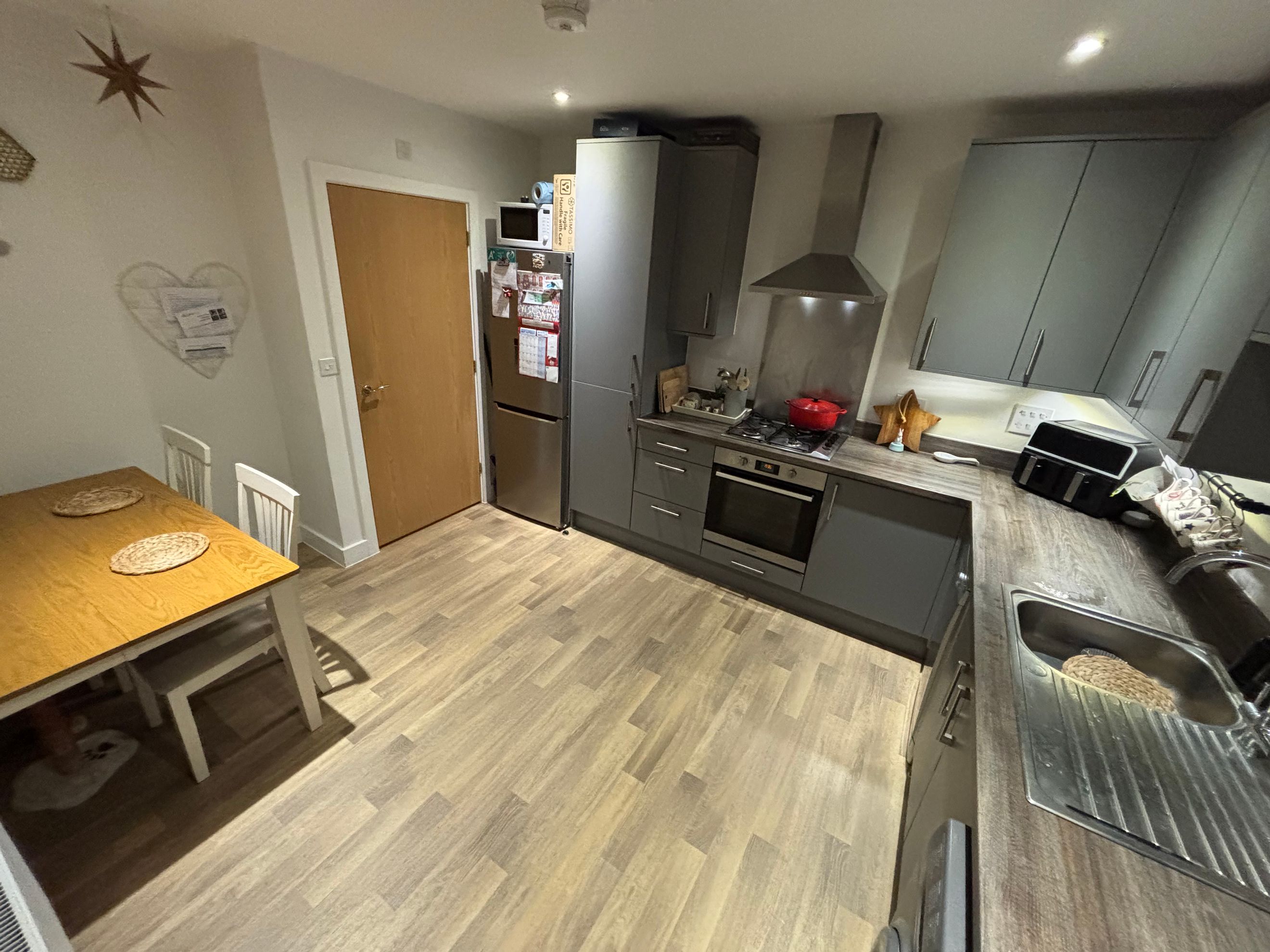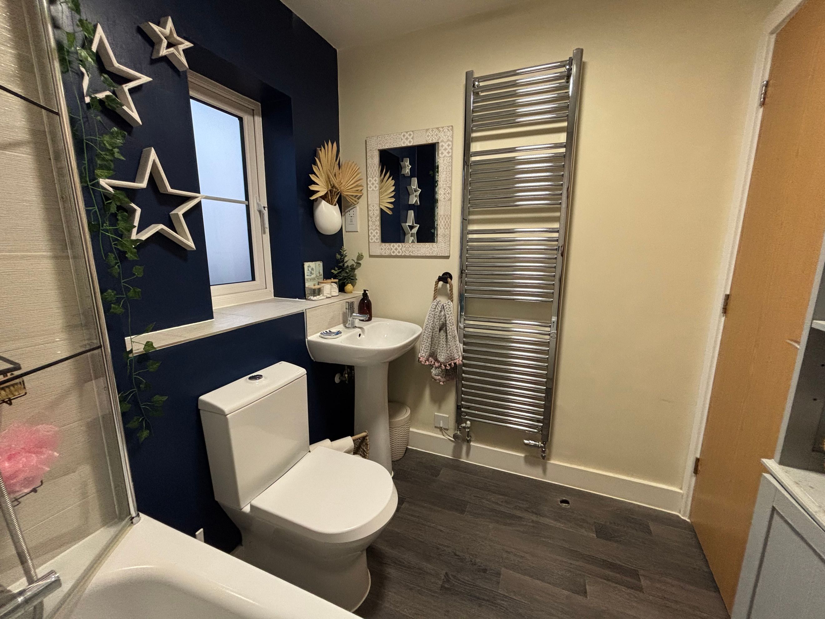 The property features modern décor throughout, a downstairs WC, and a kitchen fitted with an oven, hob and extractor. There’s plenty of built-in storage, and the private rear garden includes a shed, outside tap and gated side access. Driveway parking is available for two cars.