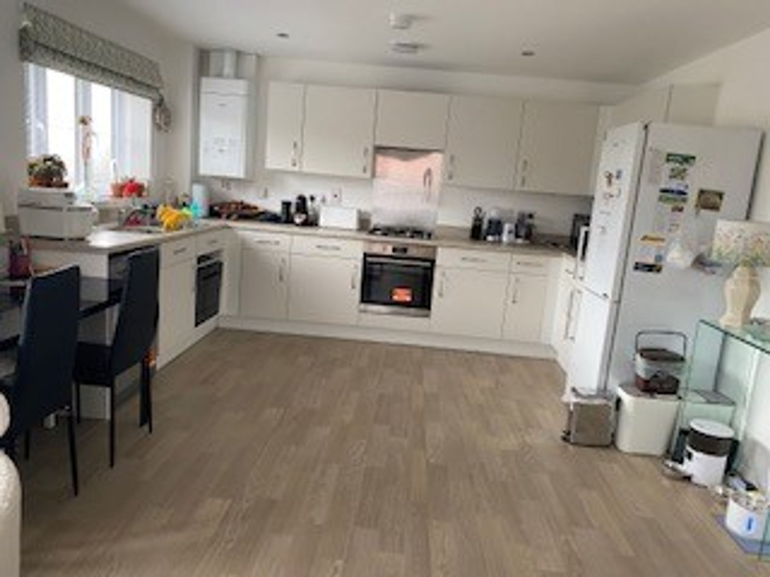 The kitchen, dining room, sitting room has a vinyl looking like laminate.