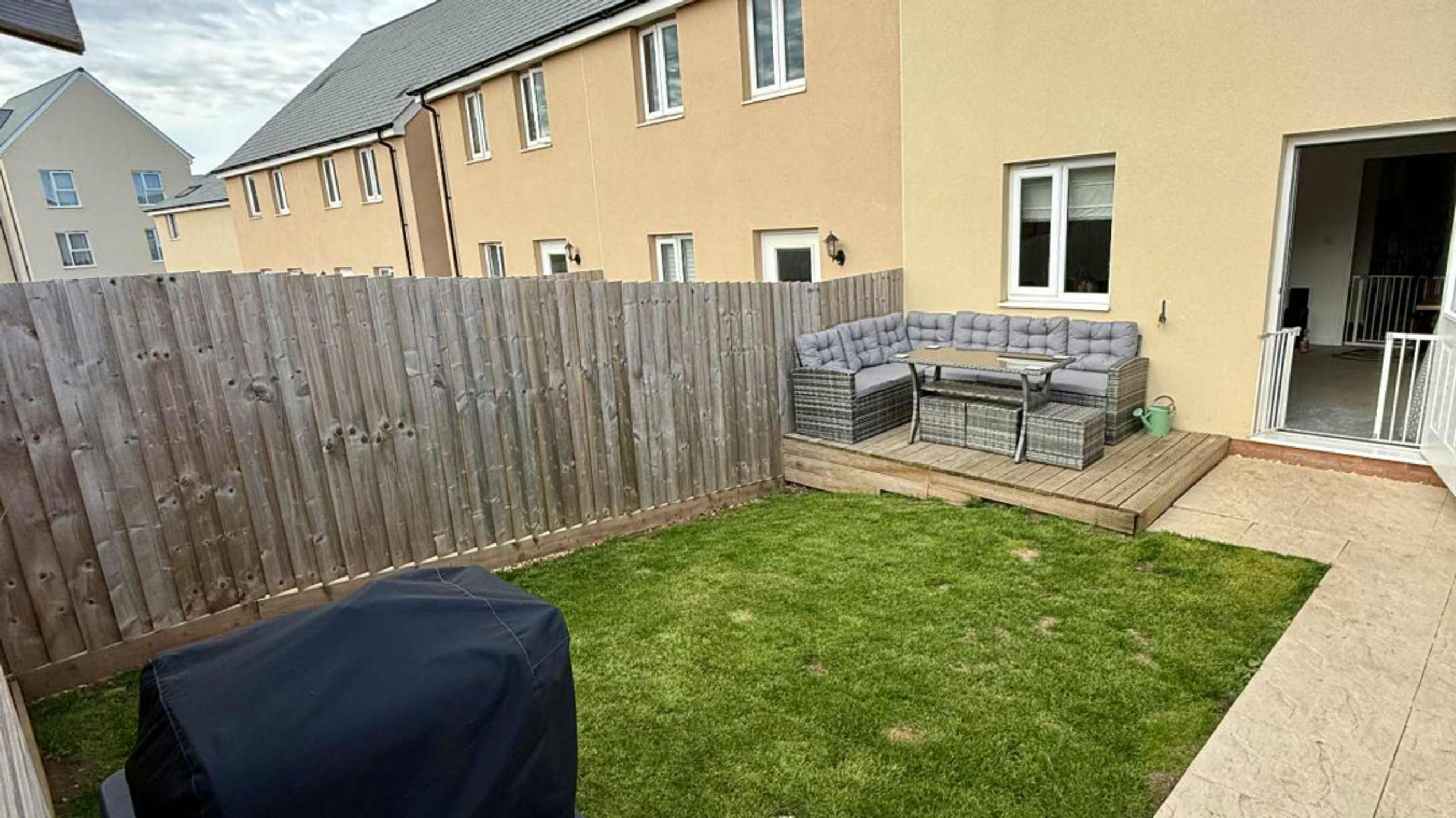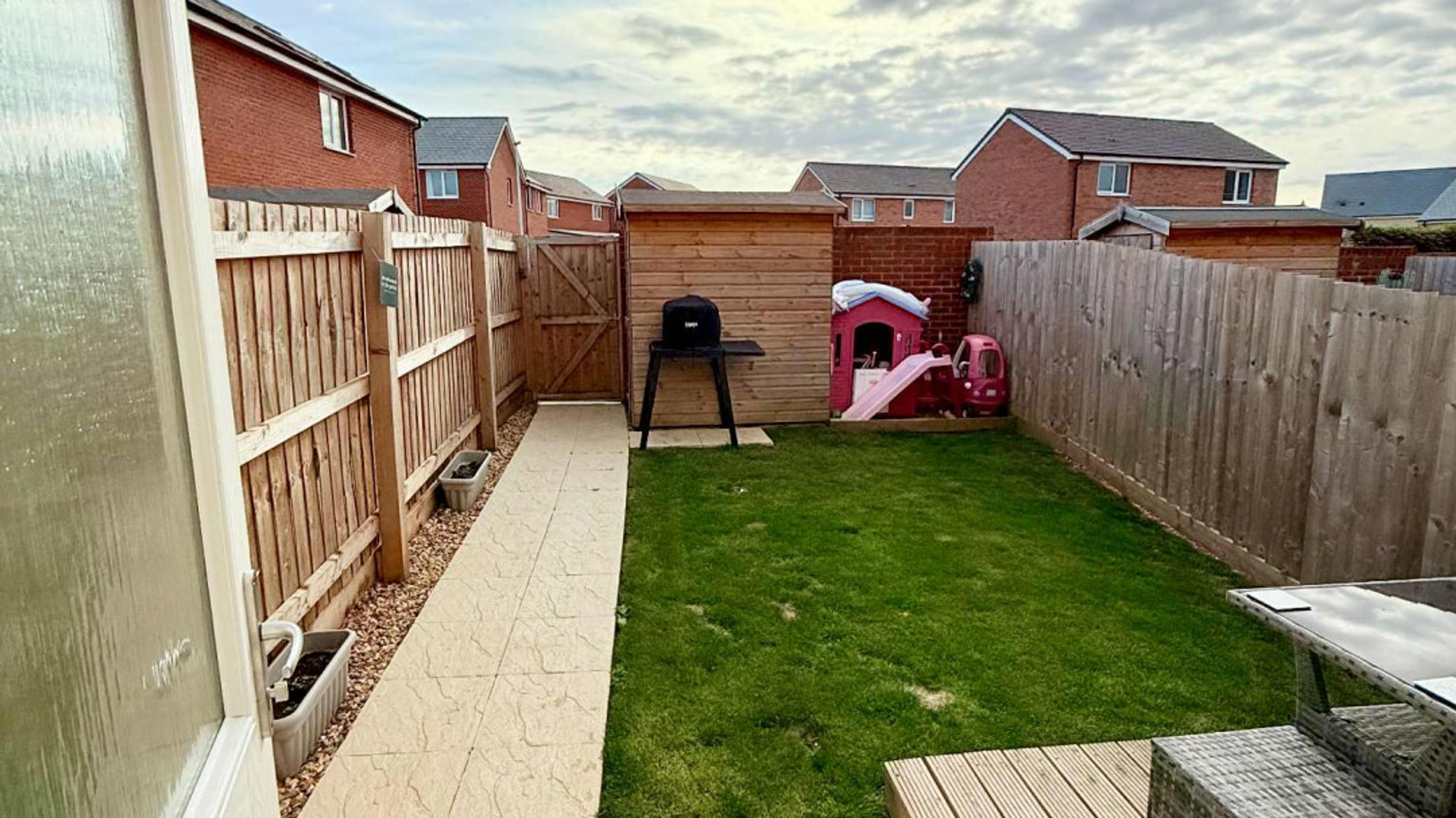 Thoughtfully designed storage cupboards add practicality, while the enclosed rear south-facing garden offers a perfect outdoor retreat with a combination of patio, lawn, decking area, and a handy garden shed.
