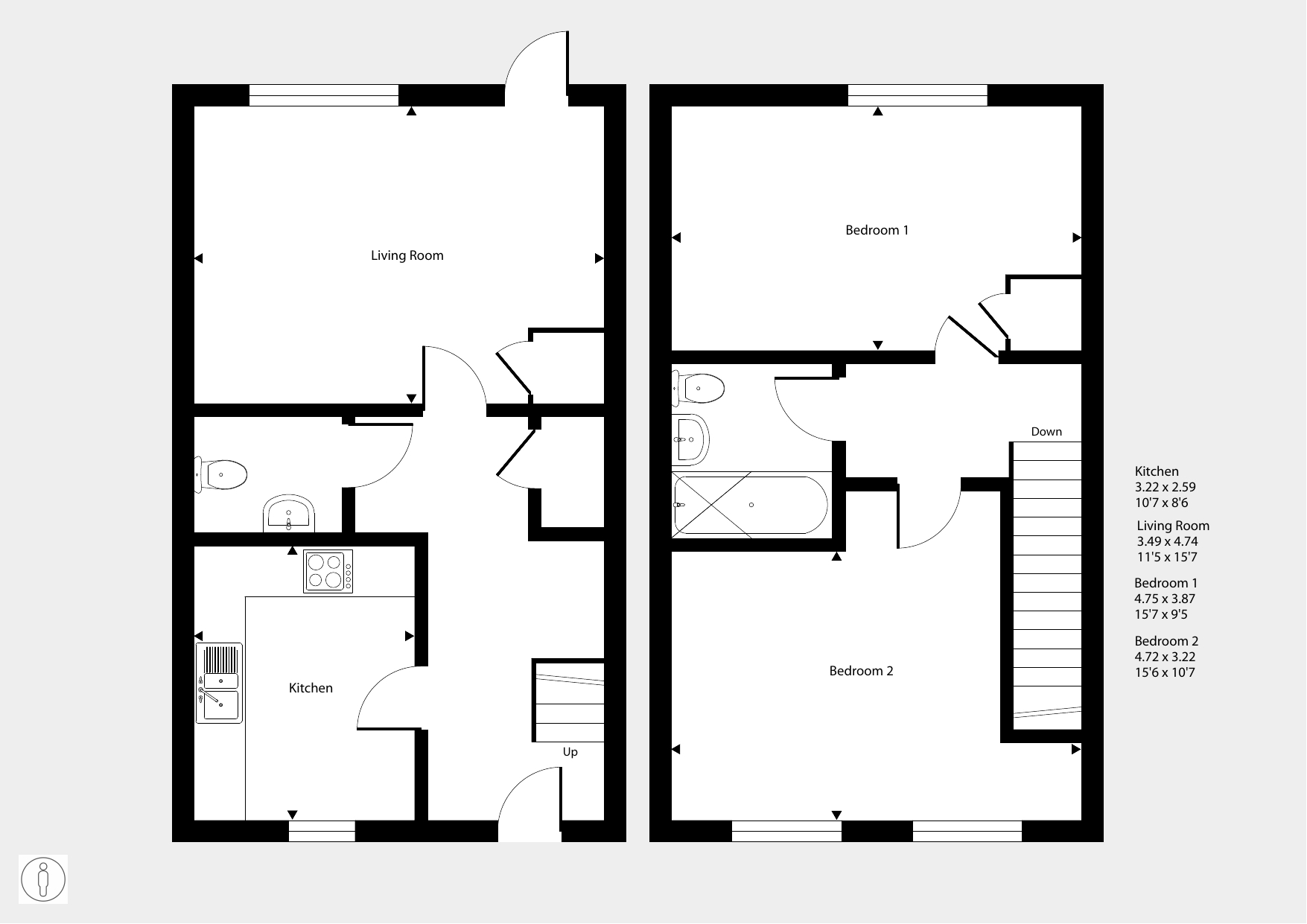 Upstairs, there are two comfortable, double bedrooms. The bathroom has a modern, white suite.