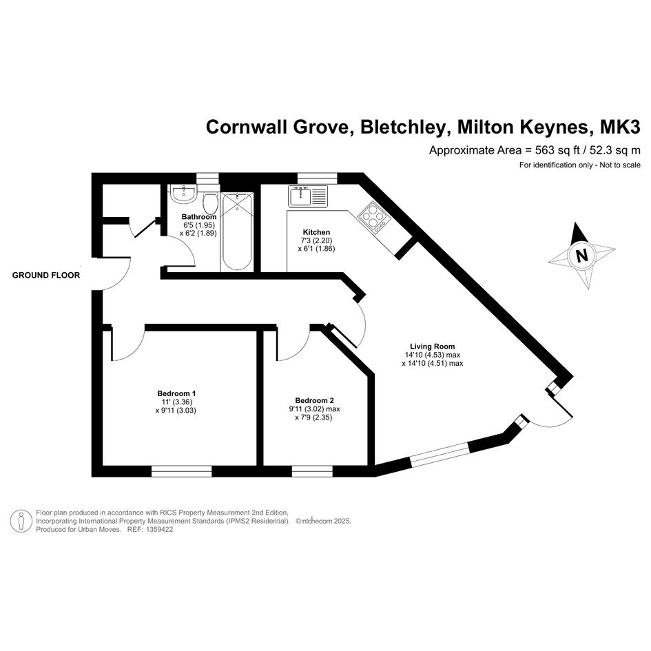 This ground-floor flat is predominantly south facing and has a reception room with glazed door that opens onto a small area of lawn bounded by shrubs and hedgerow. The semi-open-plan kitchen is naturally lit and quite spacious. There is a good-sized main bedroom plus a smaller second bedroom, an attractive bathroom and a hallway storage/utility cupboard. Well insulated walls, double glazing and gas central heating make for a good energy-efficiency rating. The development has an additional area of communal lawn/garden to the rear and a car park which includes a space allocated to this flat. Alternatively, Bletchley Railway Station can be reached on foot, via bus or by brief cycle ride. Ofsted list two primaries and a secondary within a quarter-mile radius of Cornwall Grove, all three rated 'Good', plus there are several other well-thought-of schools in the surrounding area.