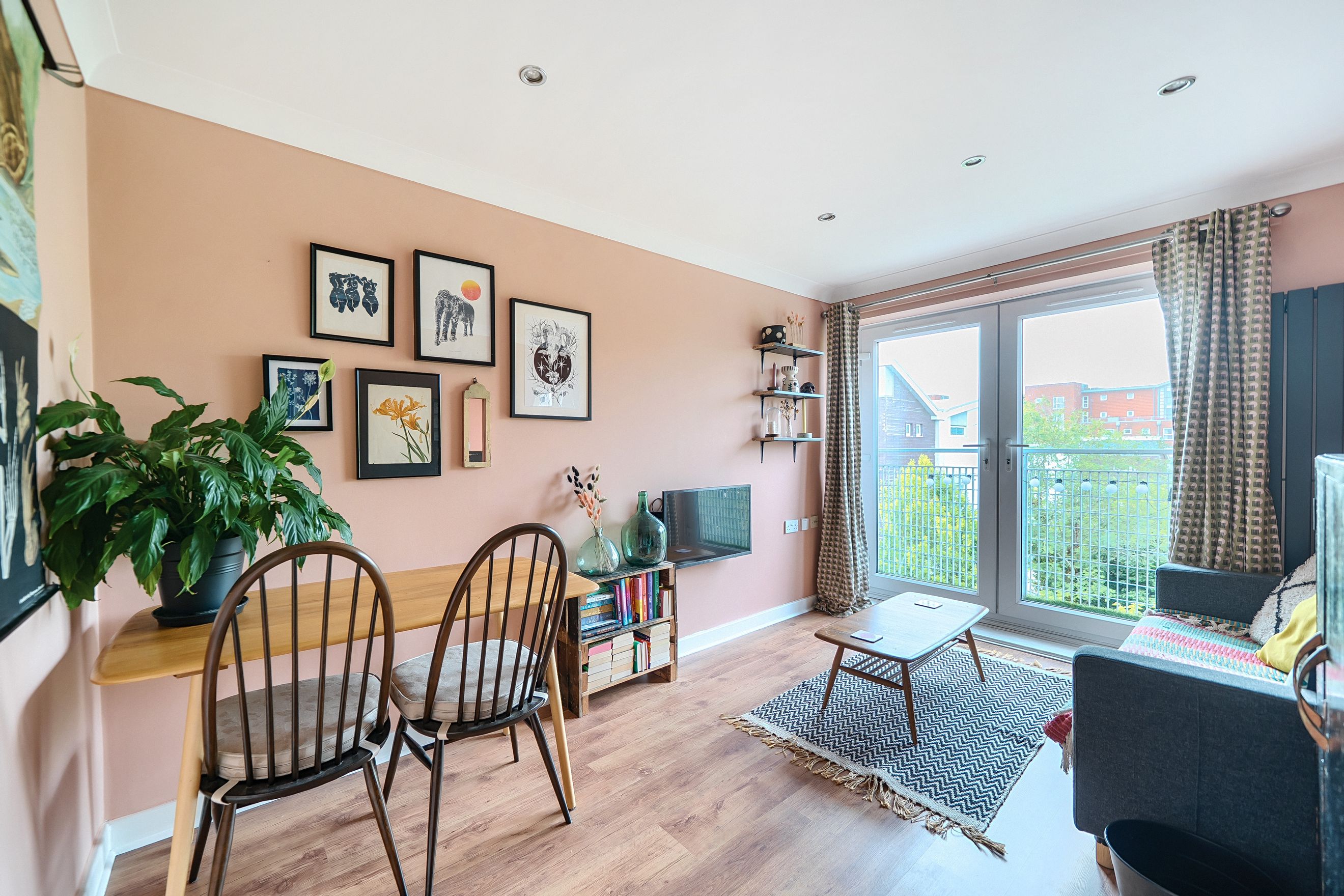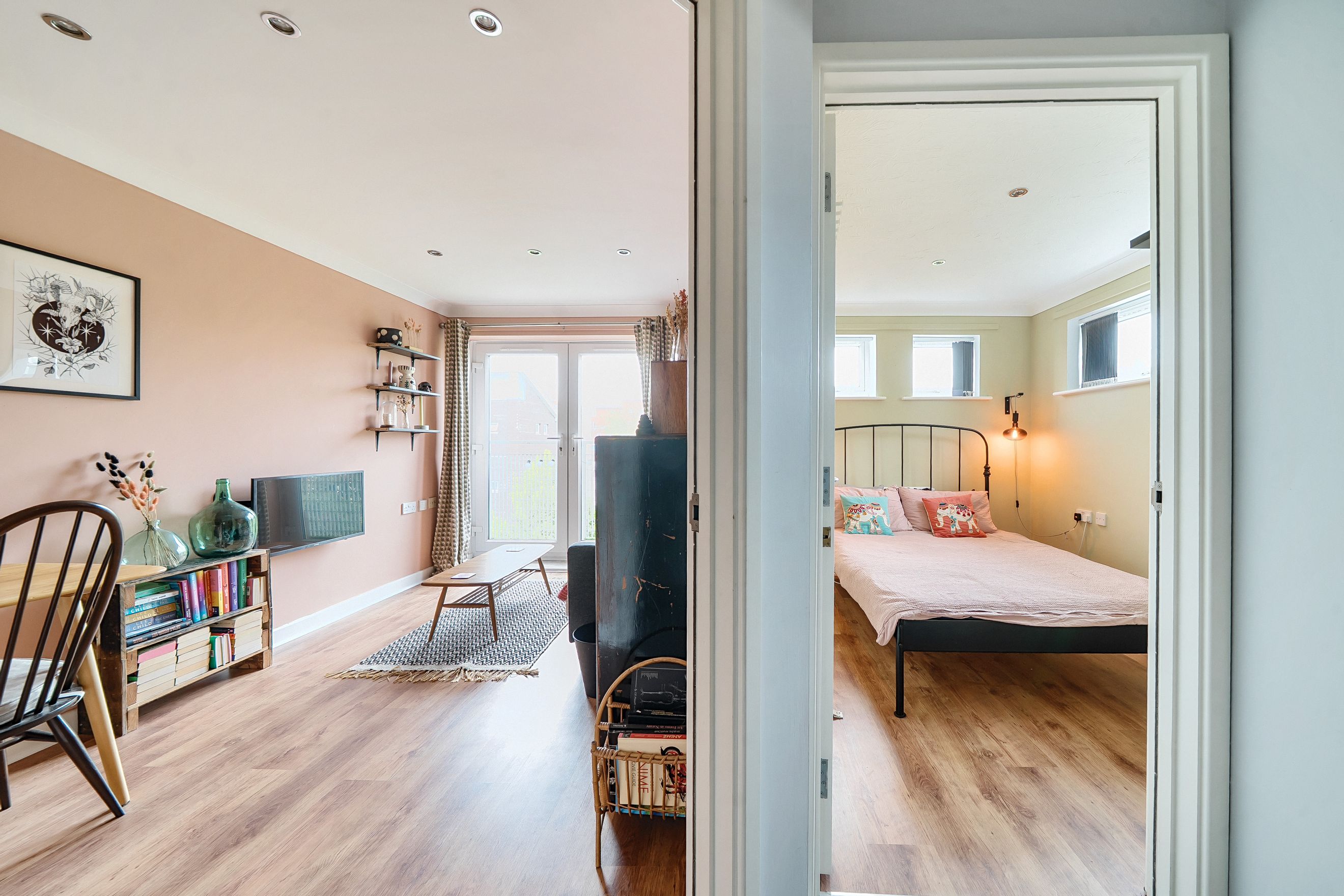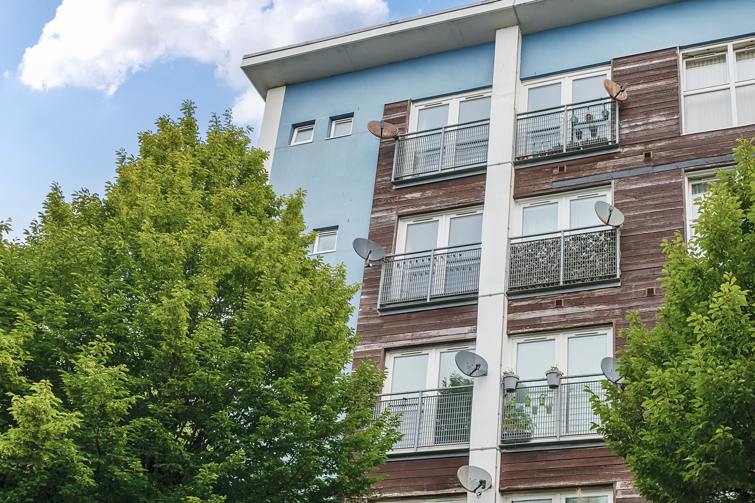 One bedroom modern third floor flat in a small block on a quiet residential estate.