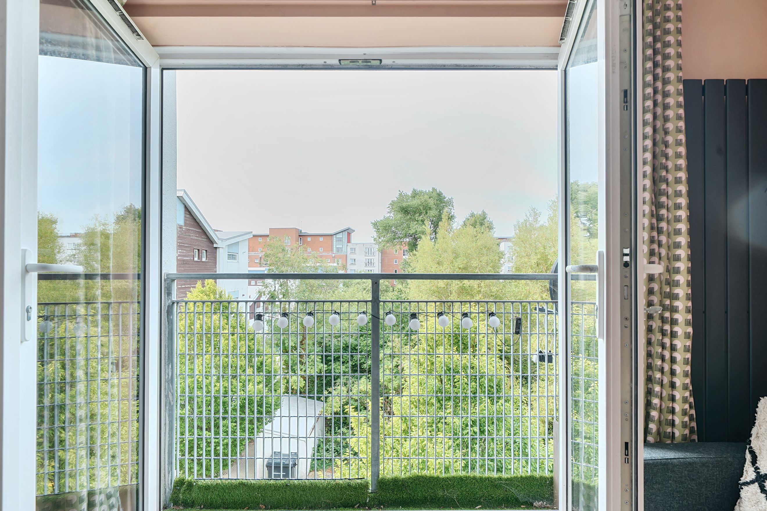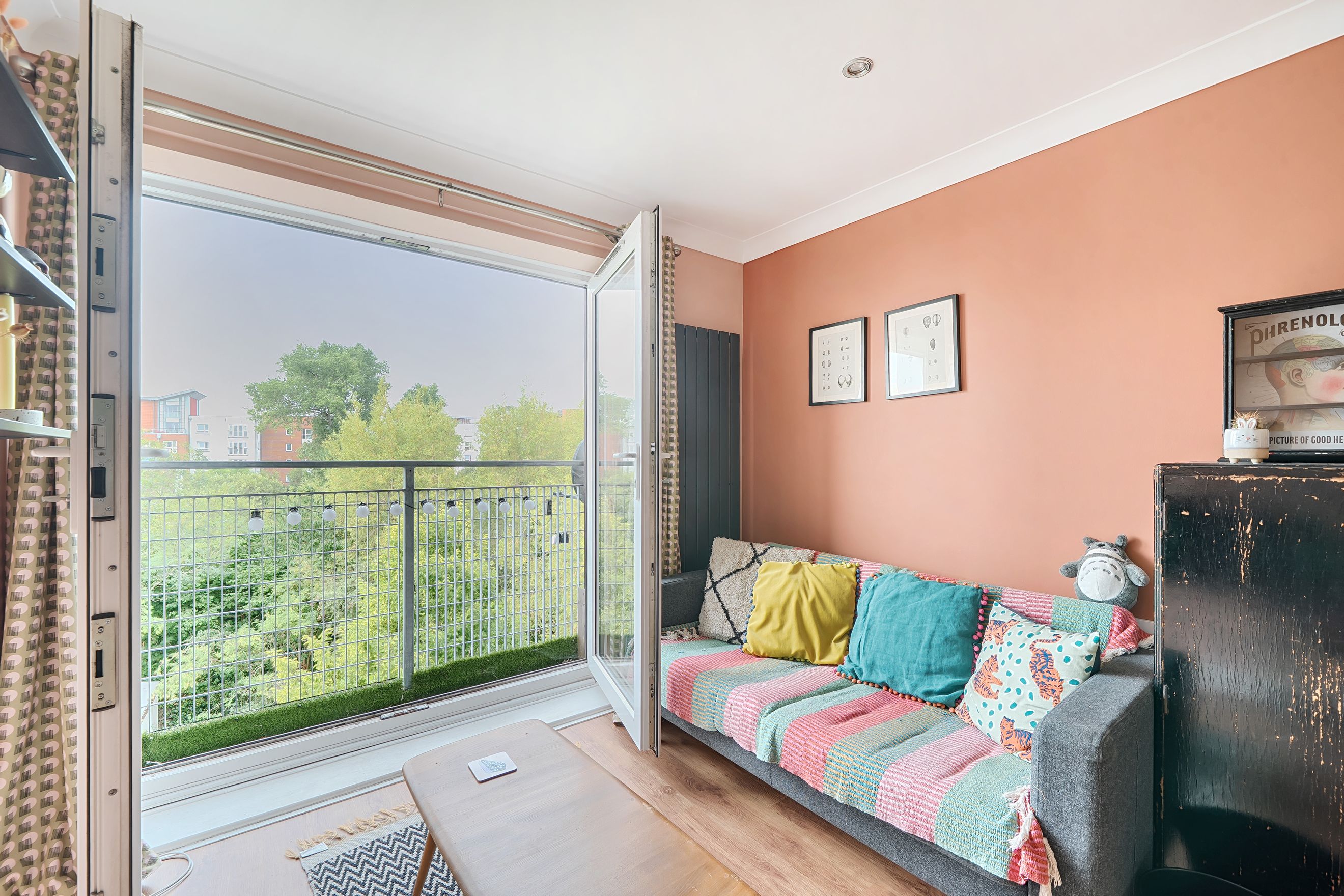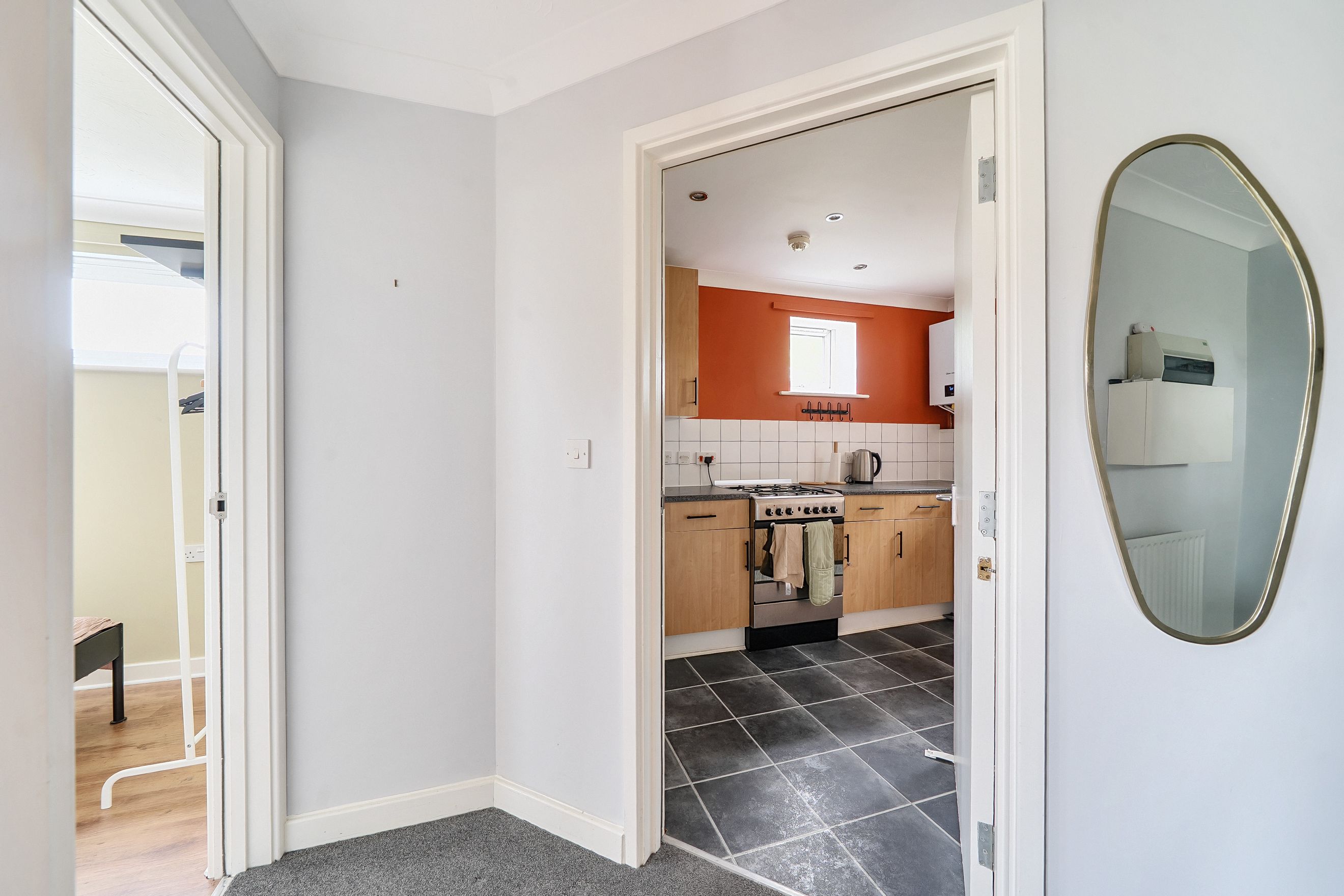 One bedroom modern third floor flat in a small block on a quiet residential estate.