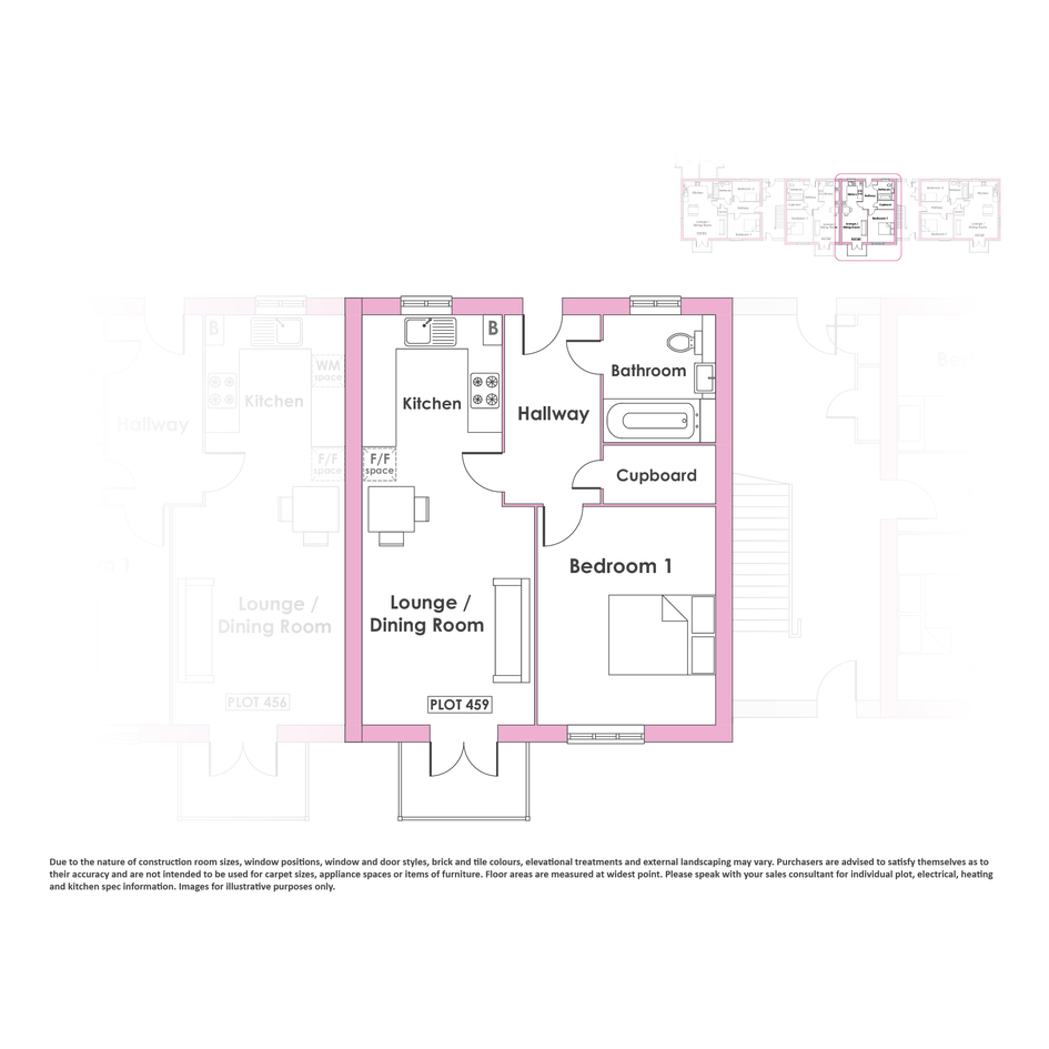 Enter The Elmhurst into its welcoming hallway, which leads you to the heart of this home, the open-plan living space. This convenient space has everything you need for comfortable living. Unwind in the lounge area after a long day and practice your culinary skills in the well equipped kitchen. The kitchen features an integrated oven, hob and extractor hood, with enough space for a dining table, making this the ideal space for entertaining guests. The lounge features access to a balcony, allowing plenty of natural light and fresh air to fill the room, and a space that can be enjoyed in warmer months.