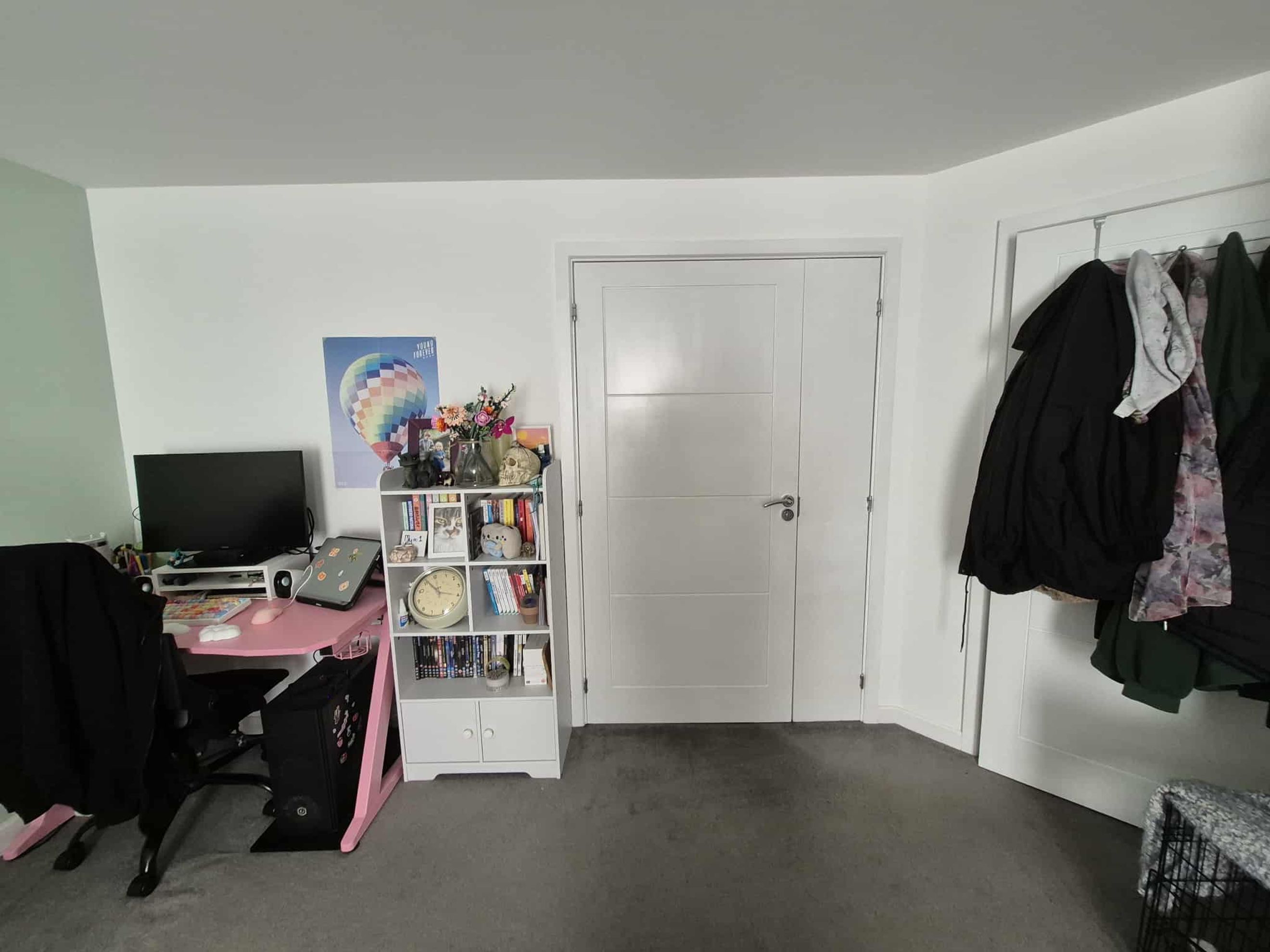 The master bedroom is bright and airy, providing ample space for all your bedroom furniture. Large windows allow plenty of natural light, creating a welcoming and spacious atmosphere.