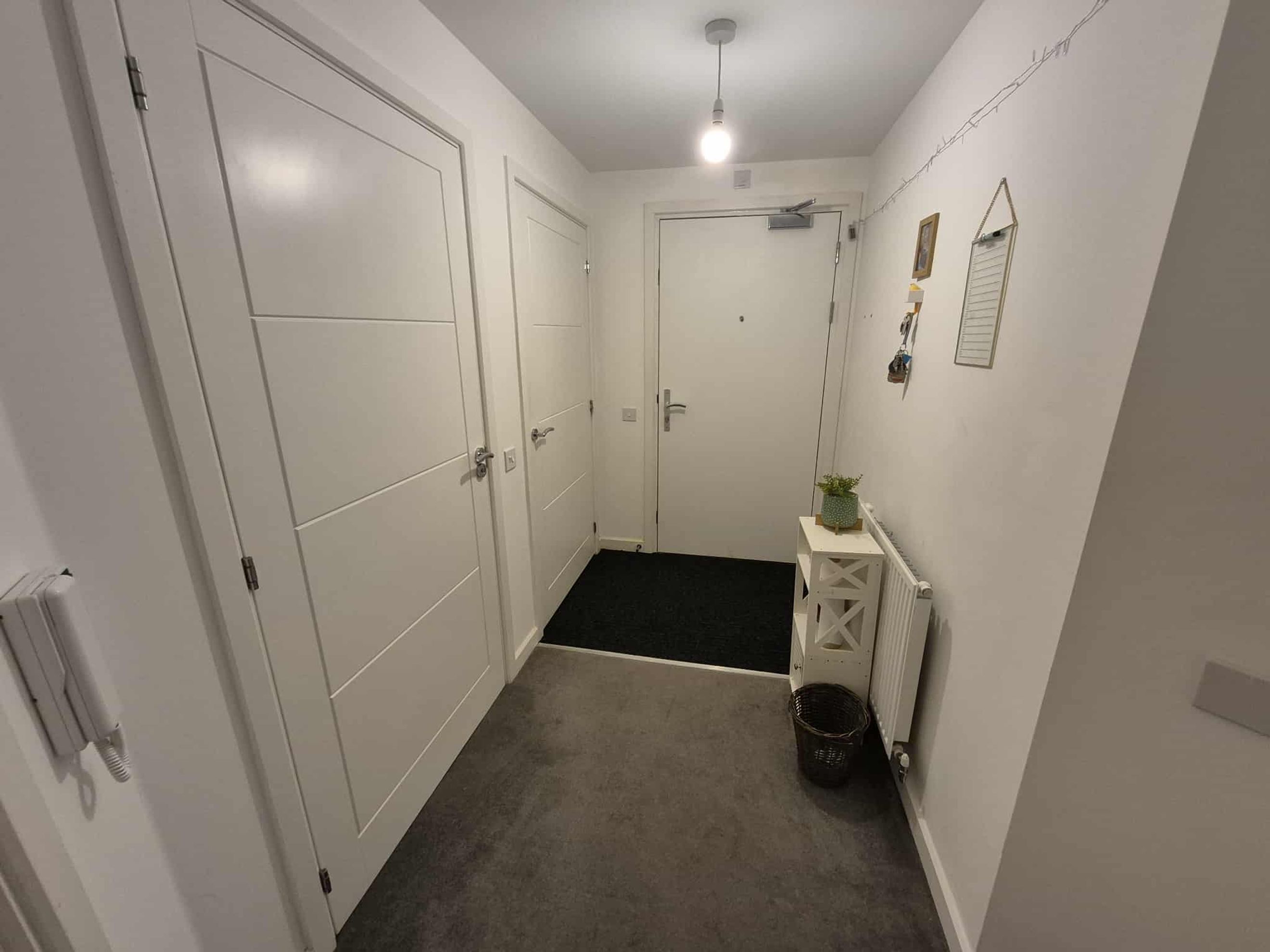 Upon entering, you are welcomed by a generous entrance hallway providing plenty of space, a perfect area for keeping shoes and coats neatly tucked away.