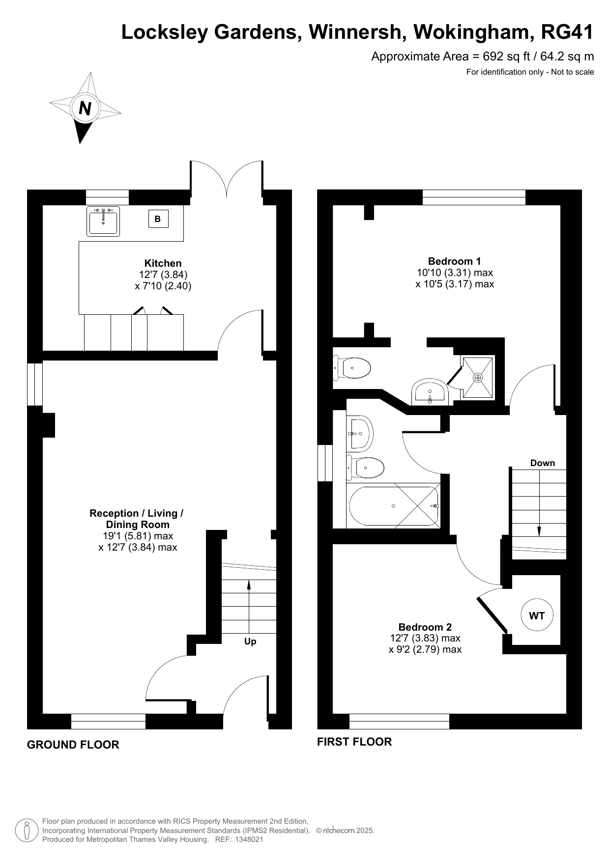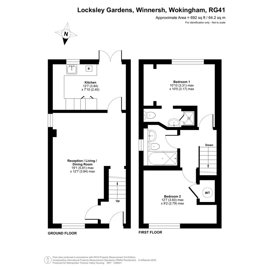 The property on the ground floor comprises an entrance hall, a spacous living room, and a separate fitted kitchen. On the first floor, there are two bedrooms (one en-suite) and a bathroom.