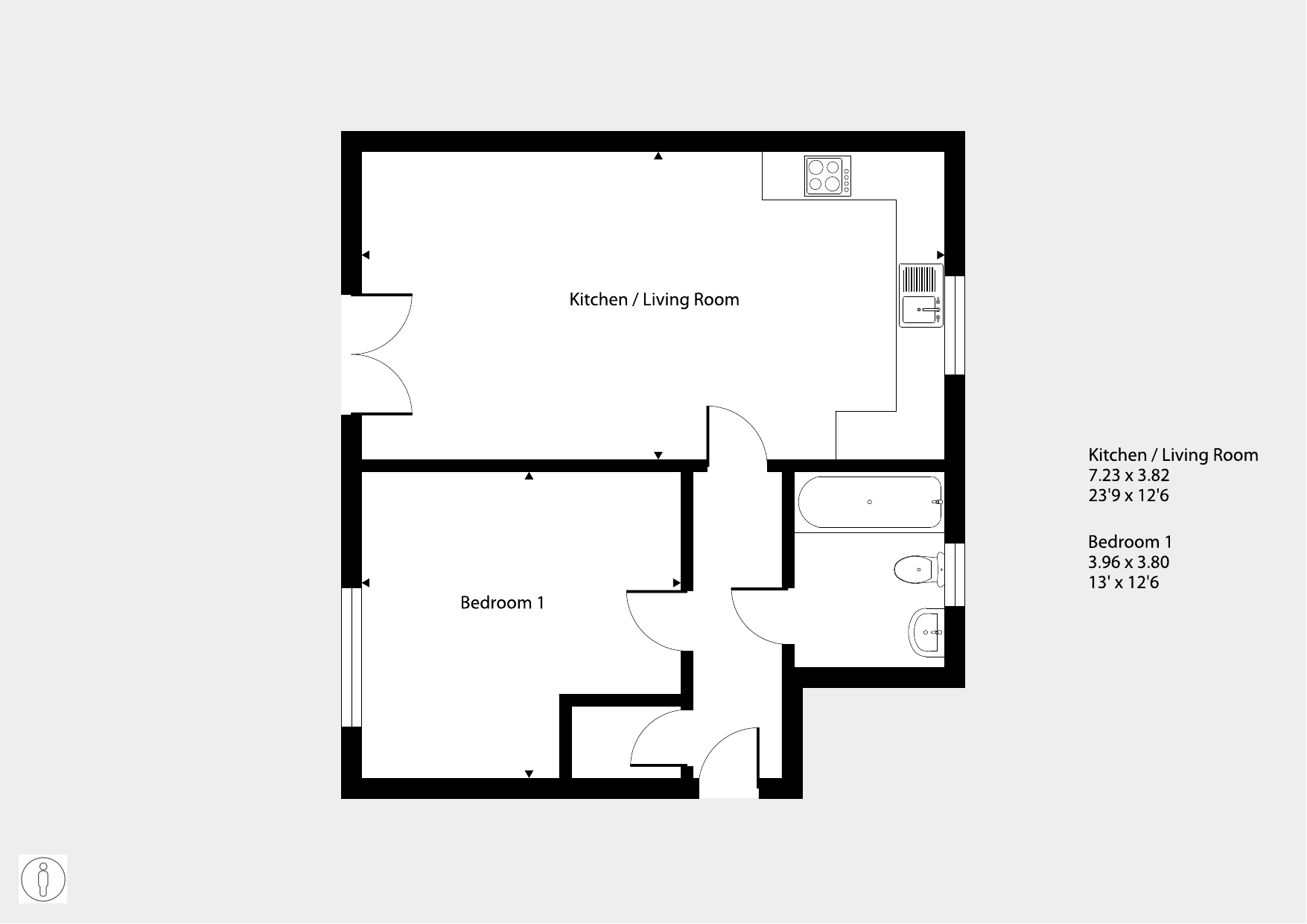 Featuring an open-plan living area, with doors to your Juliette balcony. The kitchen is fitted with an oven, hob and hood.