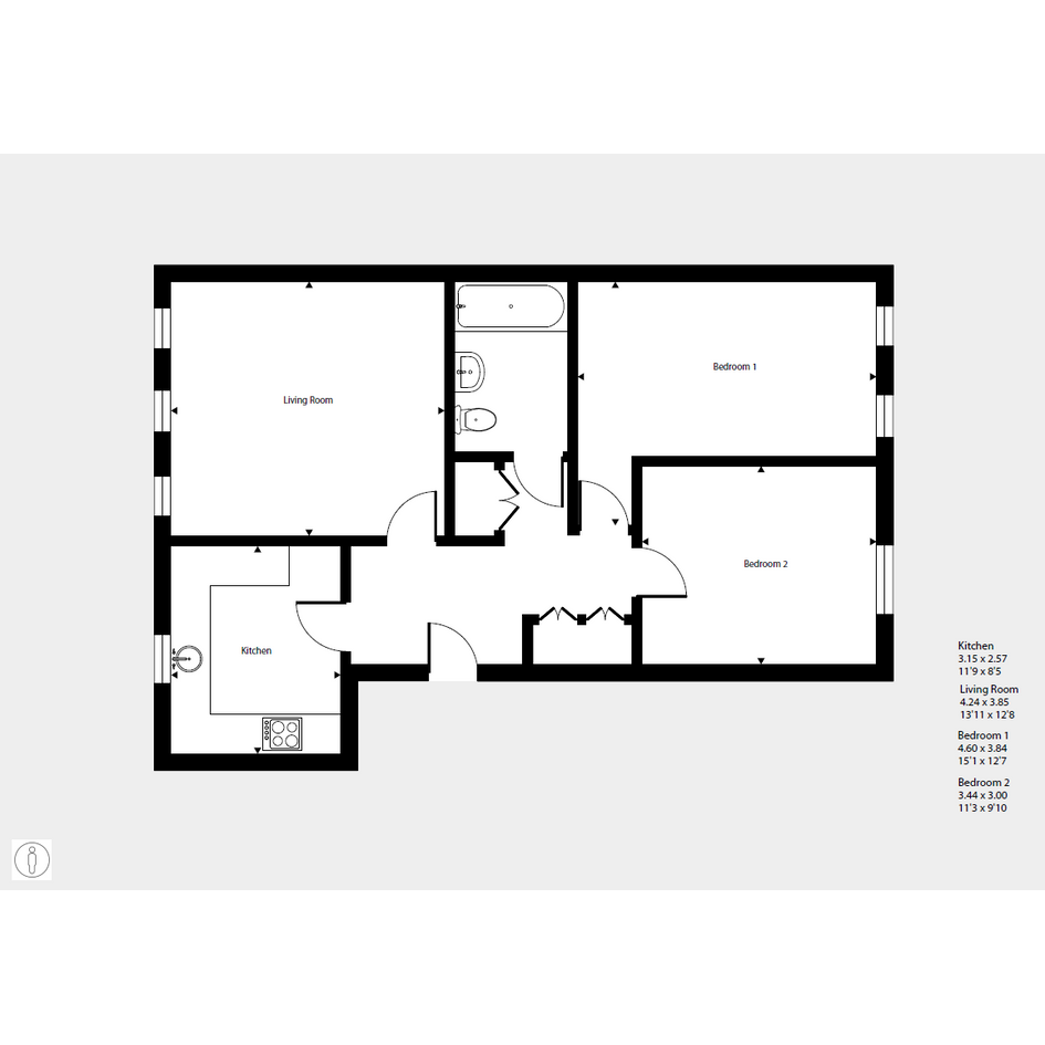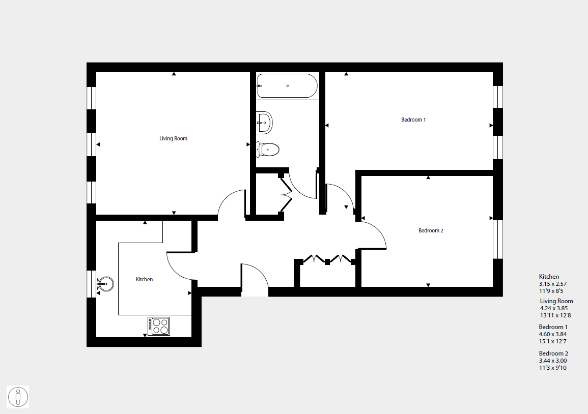 Featuring a spacious living room and a separate kitchen, fitted with an oven, hob and hood. There are two comfortable, double bedrooms. The bathroom has a three-piece, white suite.