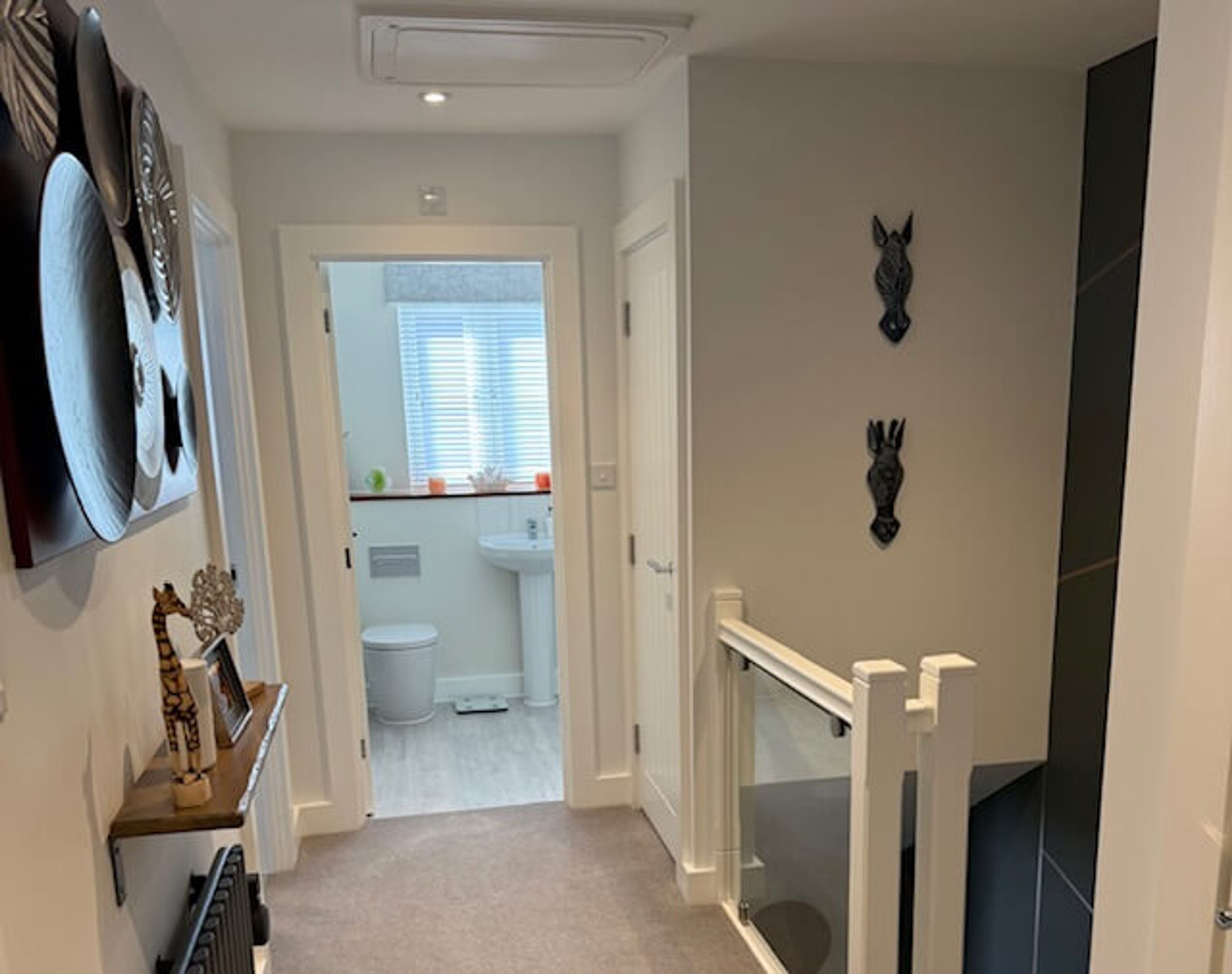 This beautifully maintained three-bedroom home, located in the desirable development of The Paddocks, offers spacious and thoughtfully designed living throughout. Upon entering, you're welcomed by a large tiled entrance hallway with underfloor heating, leading to a convenient downstairs toilet with a heated towel rail. The generous family living room is perfect for relaxation, while the large fitted kitchen/dining/family room boasts underfloor heating and French doors opening onto the rear garden—ideal for entertaining. Additional features include an under-stairs cupboard with lighting and power, and a spacious landing with two lit storage cupboards.