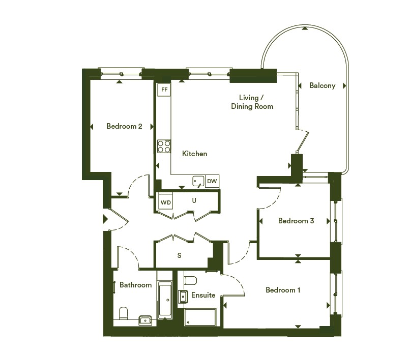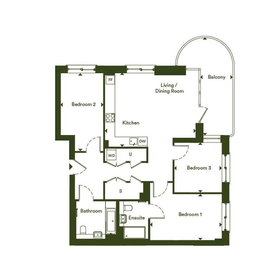 3 bedroom - 1st-floor apartment offering 99.0 m2 of internal floor area with a balcony. Register your interest now!