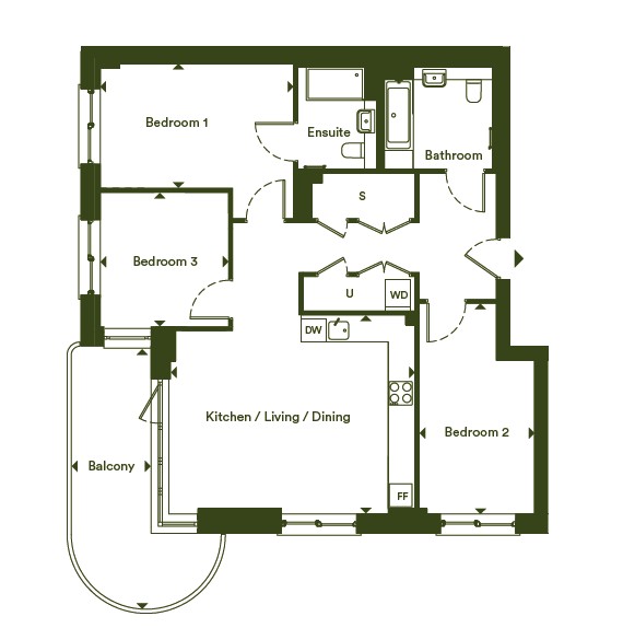 3 bedroom - 7th-floor apartment offering 98.6 m2 of internal floor area with a balcony. Register your interest now!