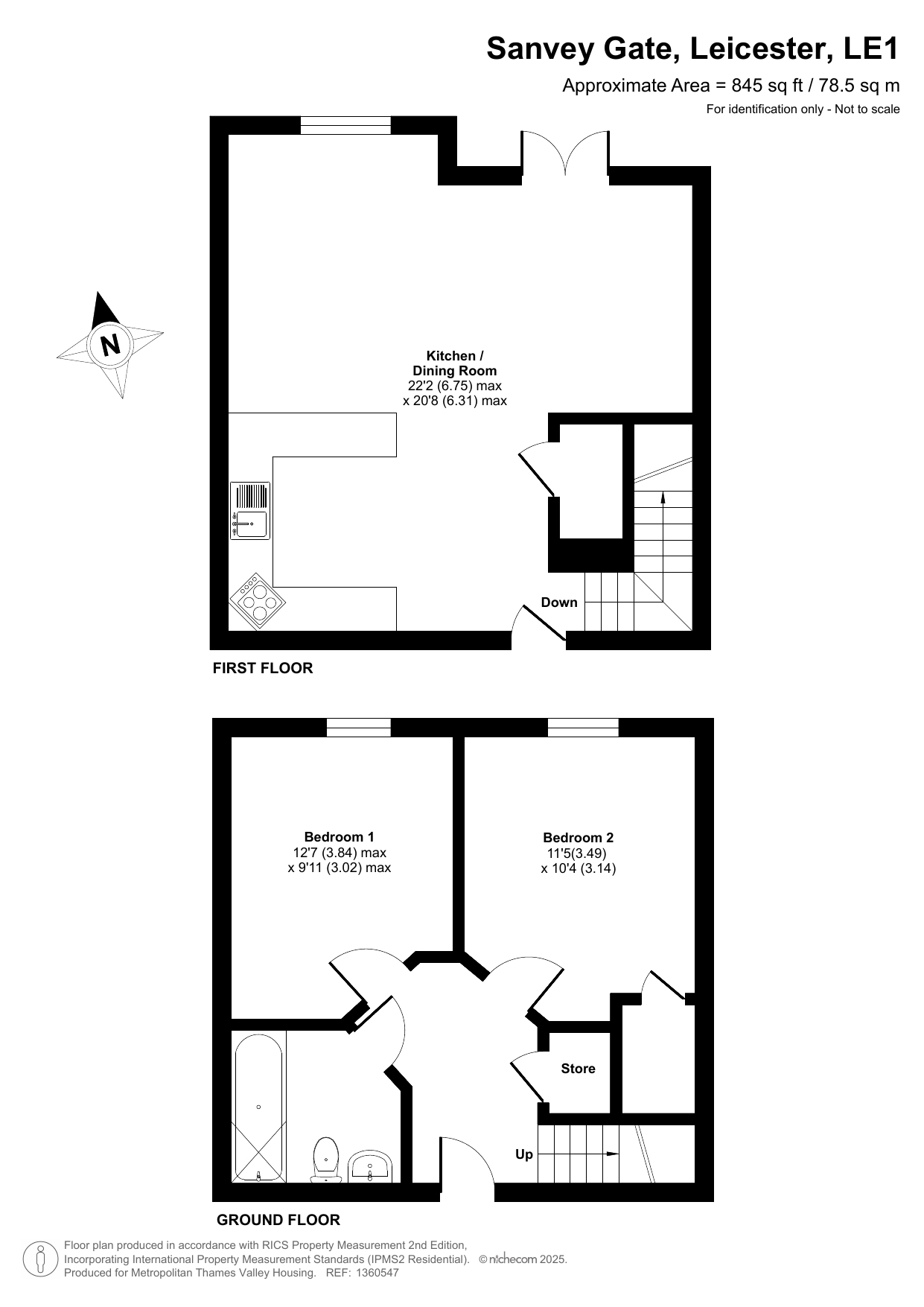The property comprises an entrance hall, a living room, an open-plan fitted kitchen, two bedrooms and one family bathroom.