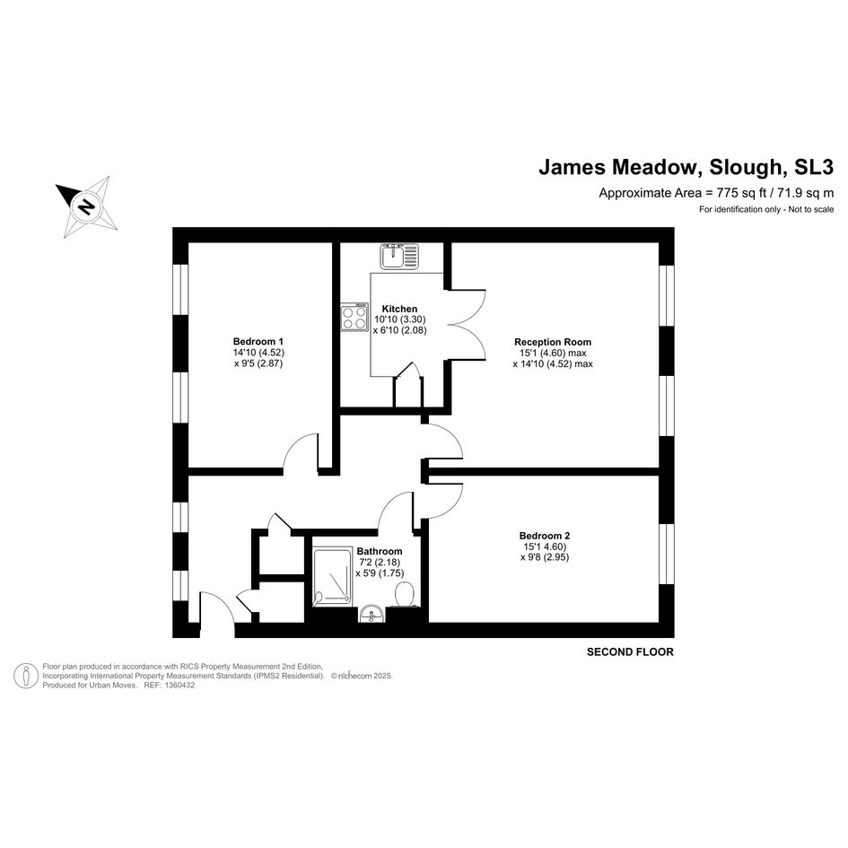 A well-proportioned and smartly-presented flat on the second floor of this modern-build but period-style development. The property has a south-east-facing reception room with double doors leading through to the kitchen. The two bedrooms are very similar-sized doubles. There is an attractive shower room with limestone-style tiles and a pair of storage/utility cupboards in the naturally-lit entrance hallway. Well insulated walls, double glazed windows and gas central heating make for a very good energy-efficiency rating. The flat comes with use of an allocated parking space and Slough town centre can also be reached via bus or bike. Junction 5 of the M4 is only a couple of minutes drive away if travelling further afield. The nearest secondary school (Langley Grammar) is within comfortable walking distance and Ofsted-rated 'Outstanding' plus there are a number of well-thought-of primary schools in the local area.