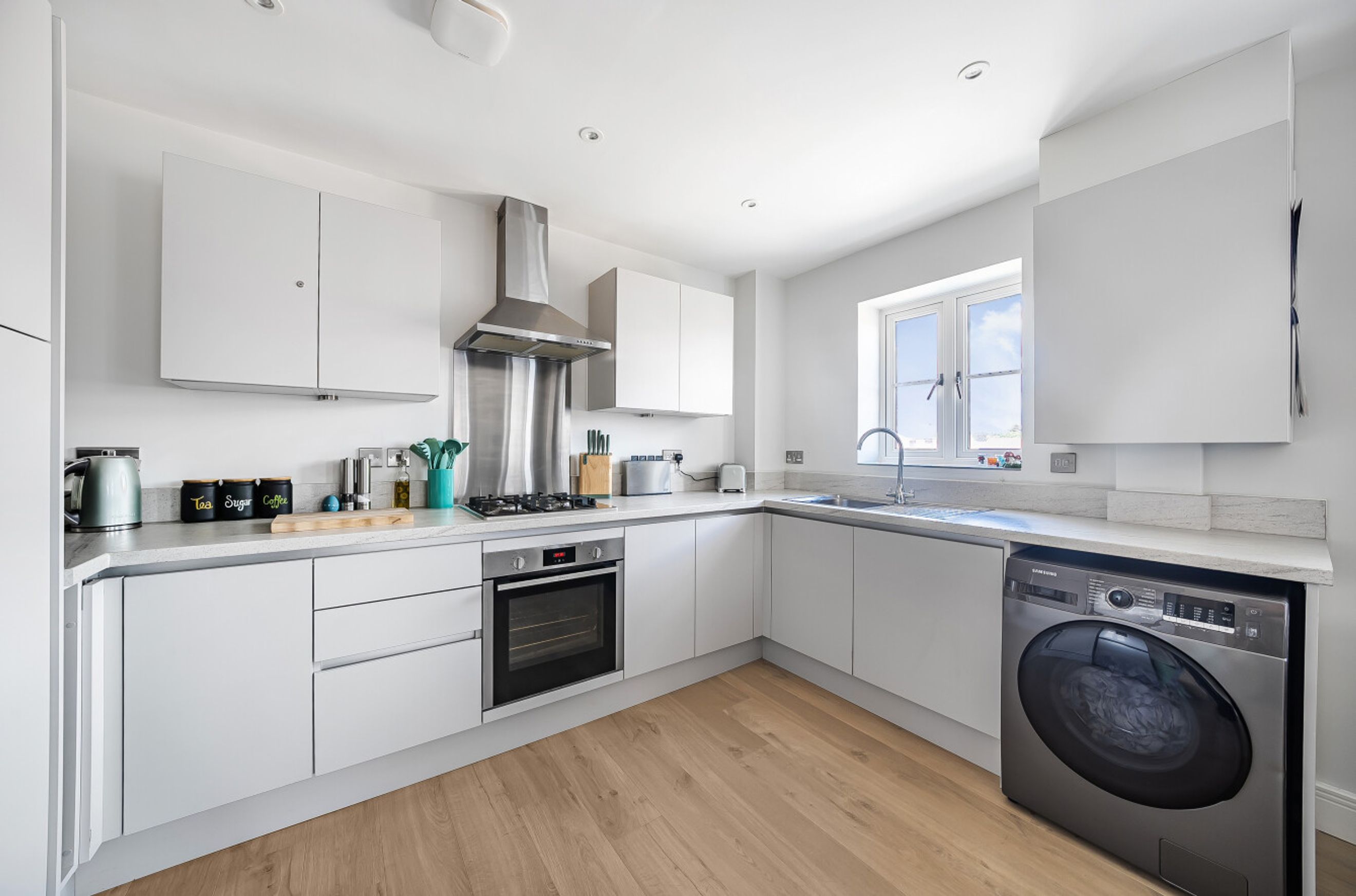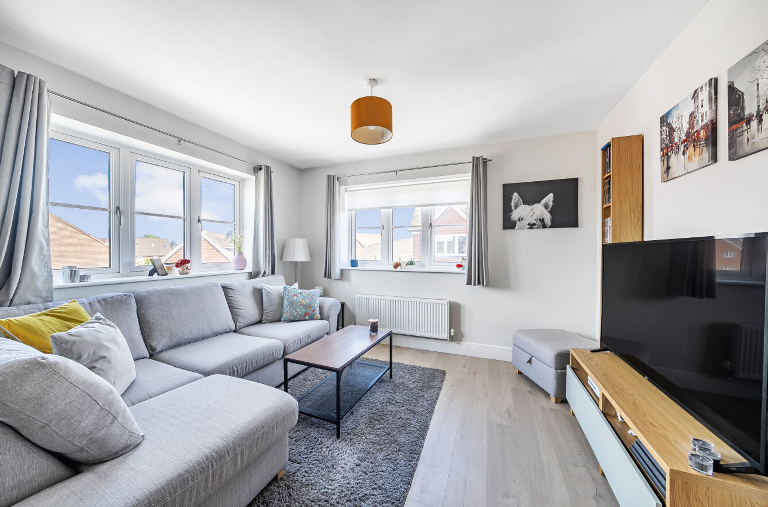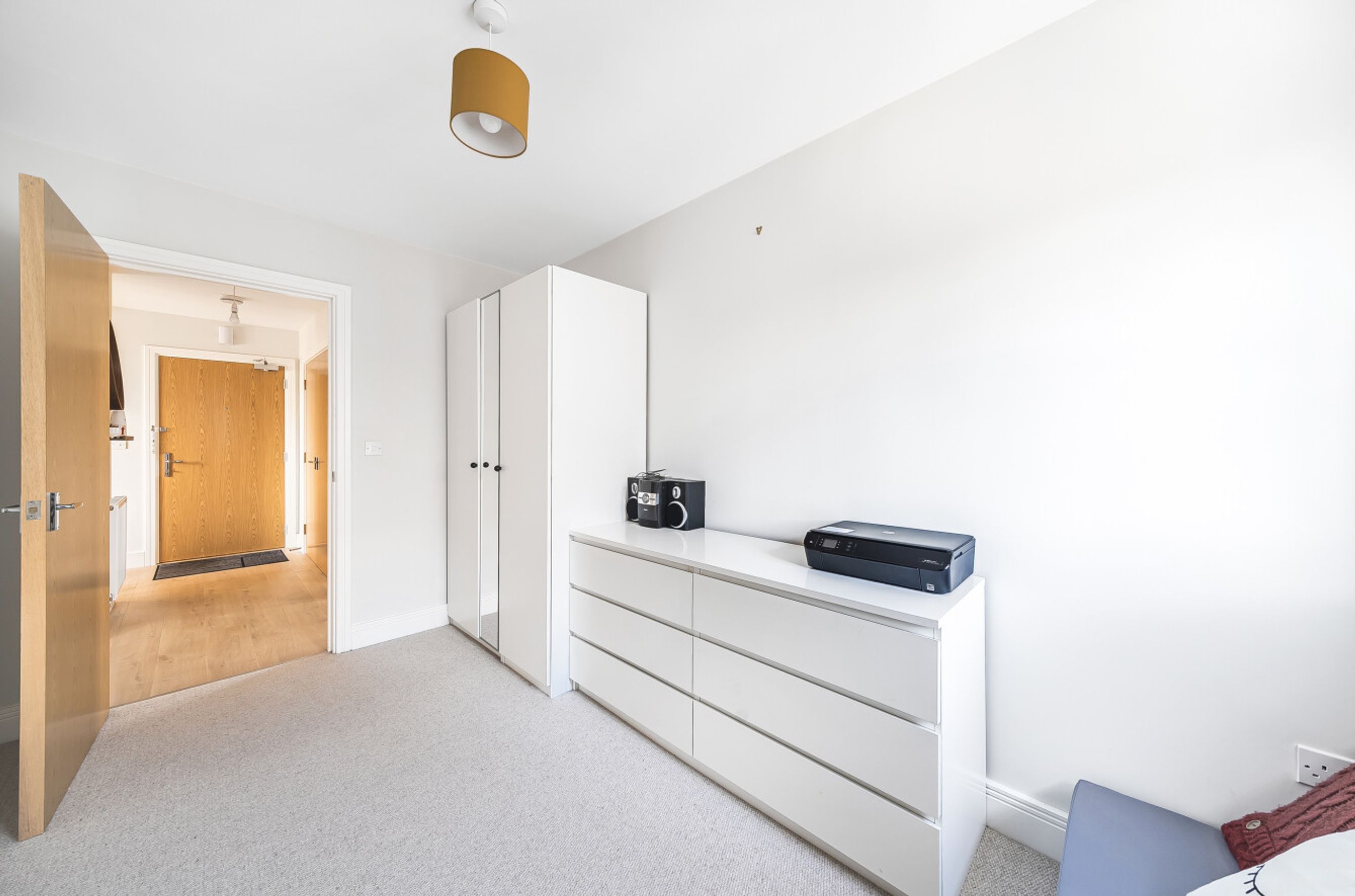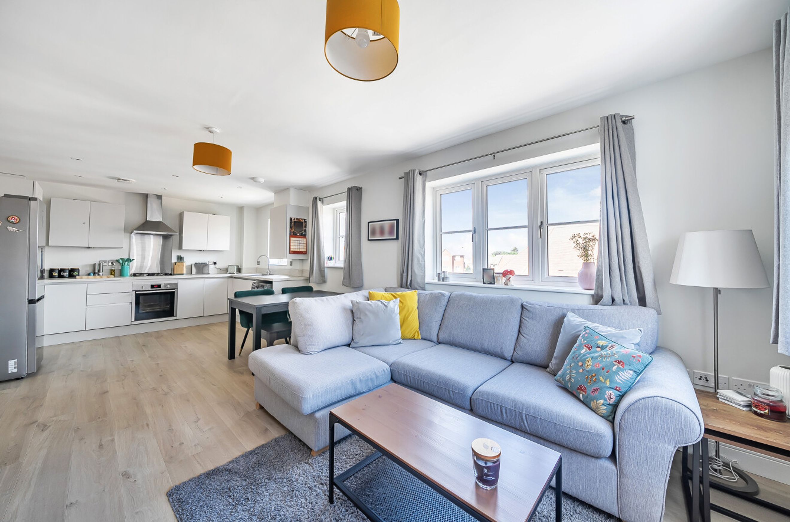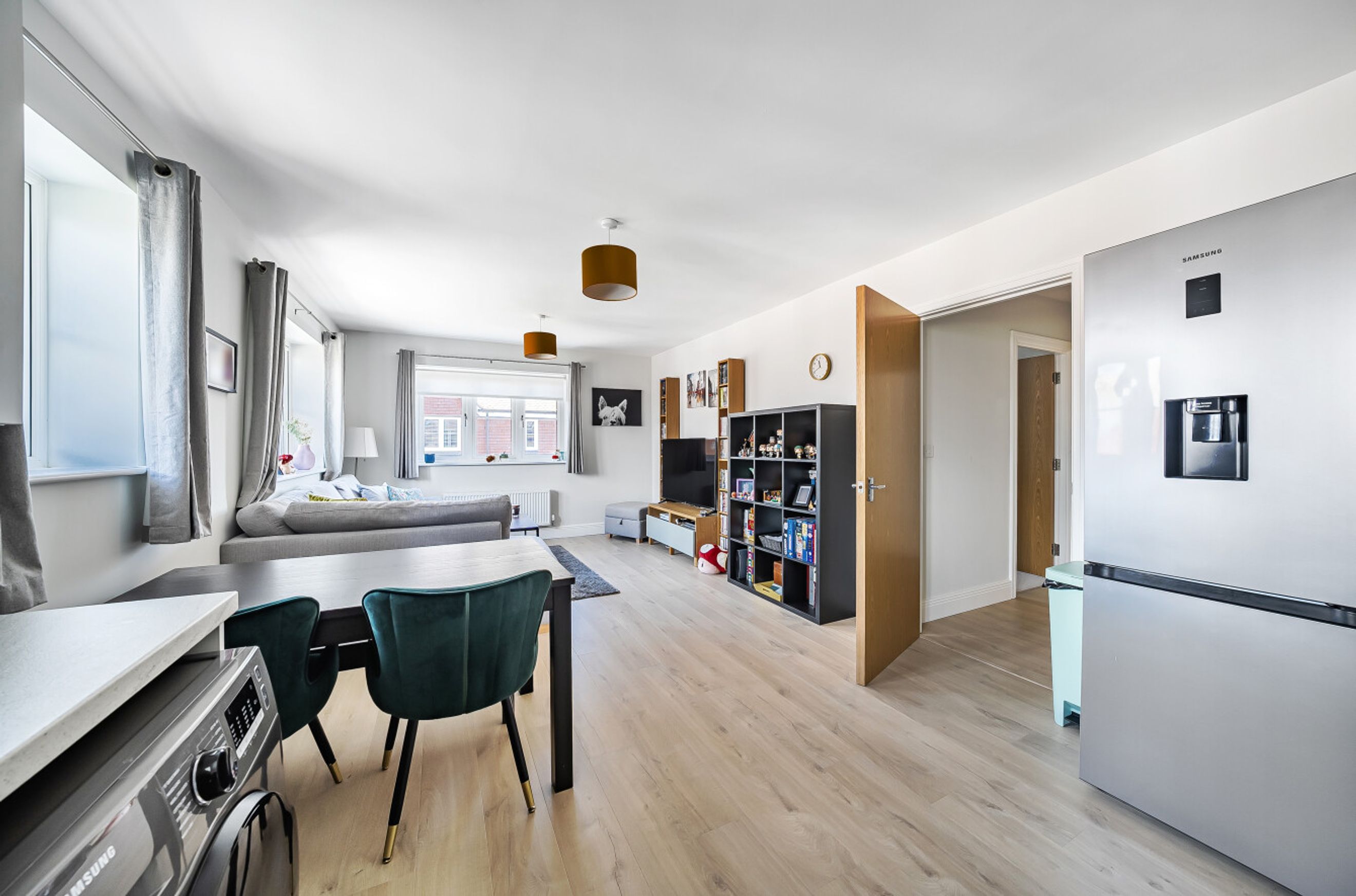 This well-proportioned flat is on the top floor of a recently constructed development and appears in excellent condition throughout. The property has a twenty-four-foot, dual-aspect reception with attractive flooring and open-plan kitchen area featuring stylish, handle-less units. The large main bedroom also benefits from windows on two sides and includes a fitted wardrobe. There is a good-sized second double bedroom, a sleek, naturally-lit bathroom and a pair of hallway storage/utility cupboards. Well insulated walls and roof, high performance glazing and a modern gas central heating system all contribute towards a very good energy-efficiency rating. The flat comes with use of a parking space and Horley Railway Station and the town centre can also be reached via brief cycle ride. Ofsted list three primary schools within a mile radius of Gainsborough Court, all rated 'Good', and Horley Leisure Centre is within comfortable walking distance.