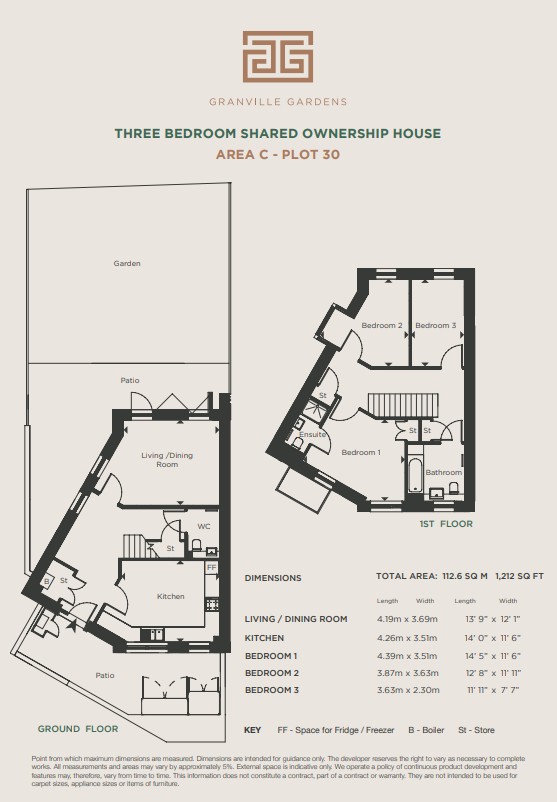 Plot 30 at Granville Gardens presents this spacious 3 bedroom, end of terrace house including a fully turfed garden, 2 spacious patios, an ensuite to bedroom one and allocated parking