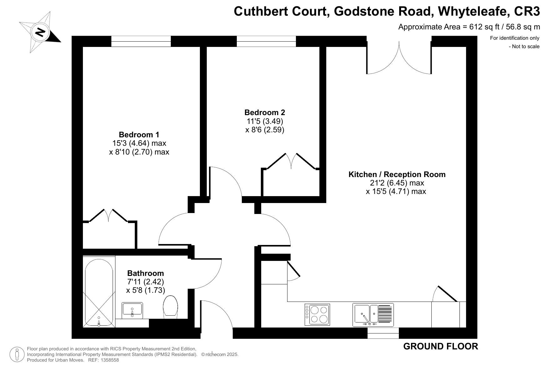 A beautifully-presented apartment in the Well Farm Heights development. This ground-floor property has a twenty-one-foot, open-plan kitchen/reception room with attractive flooring, a window at one end and west/south-west-facing doors at the other. There is a spacious main bedroom plus a second, comfortable, double bedroom. Both bedrooms include a fitted wardrobe. The bathroom has been upgraded by the current owner and there is a good-sized entrance hall. Well insulated walls, modern double glazing and gas central heating make for a good energy-efficiency rating. The apartment comes with use of an allocated parking space and Ethelred Court is also just minutes from Whyteleafe South Station for rail services between Caterham and London Bridge. Nearby Manor Park offers green, open space to enjoy.