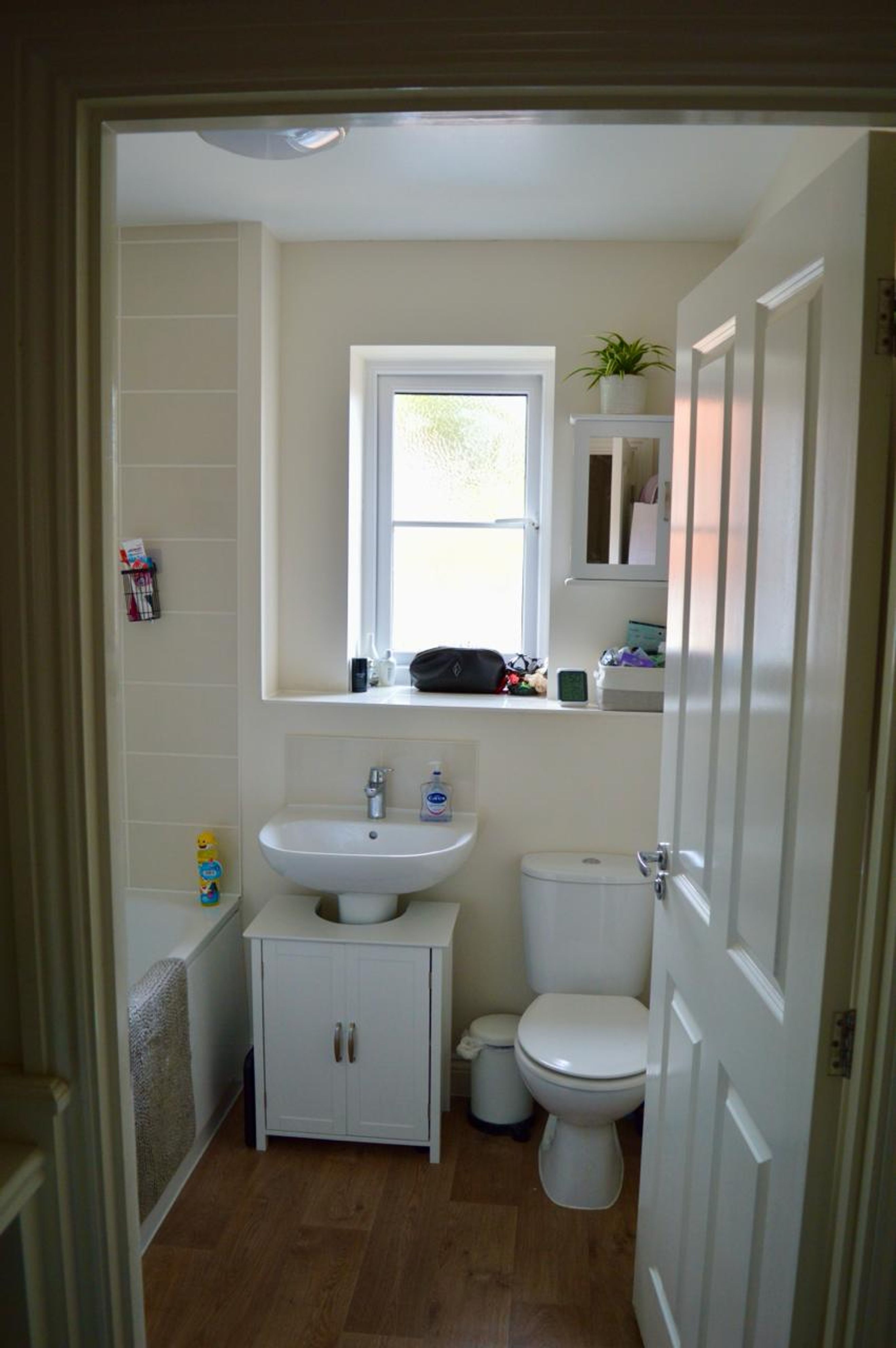 Upstairs, the property boasts 3 bedrooms— 2 generous doubles and 1 single—alongside a family bathroom complete with a three-piece suite and a shower over the bath, enhanced by a window for natural light. A built-in storage cupboard on the landing adds further convenience.