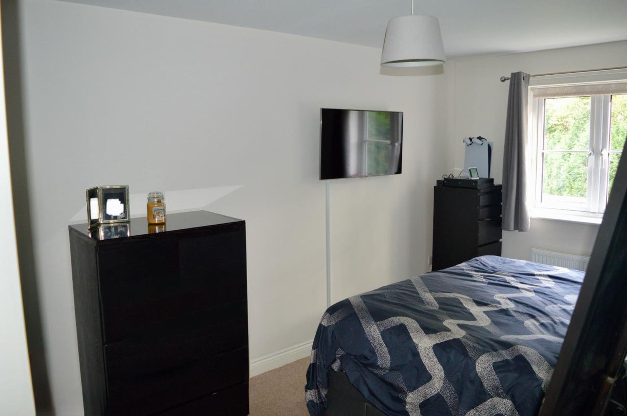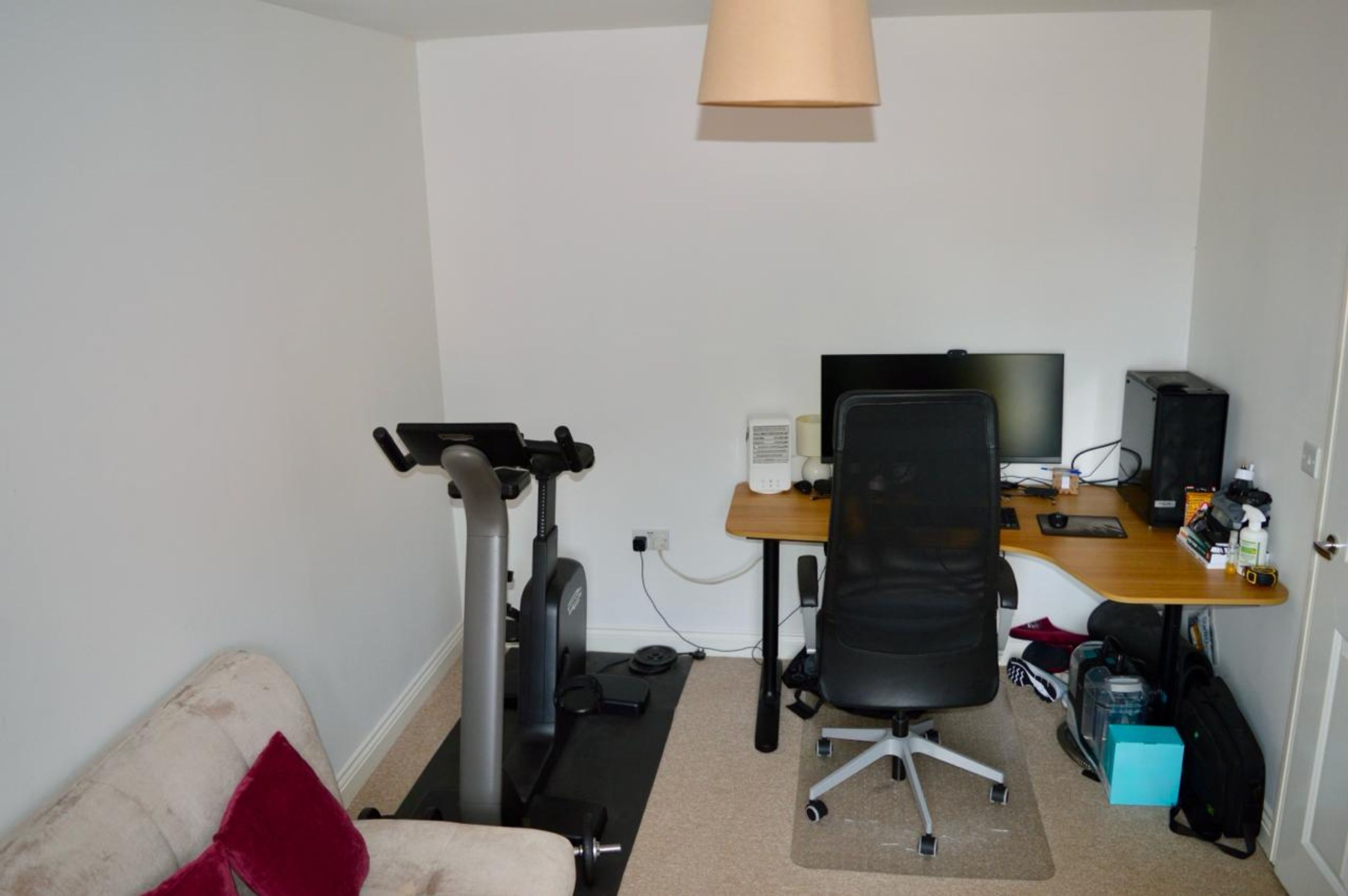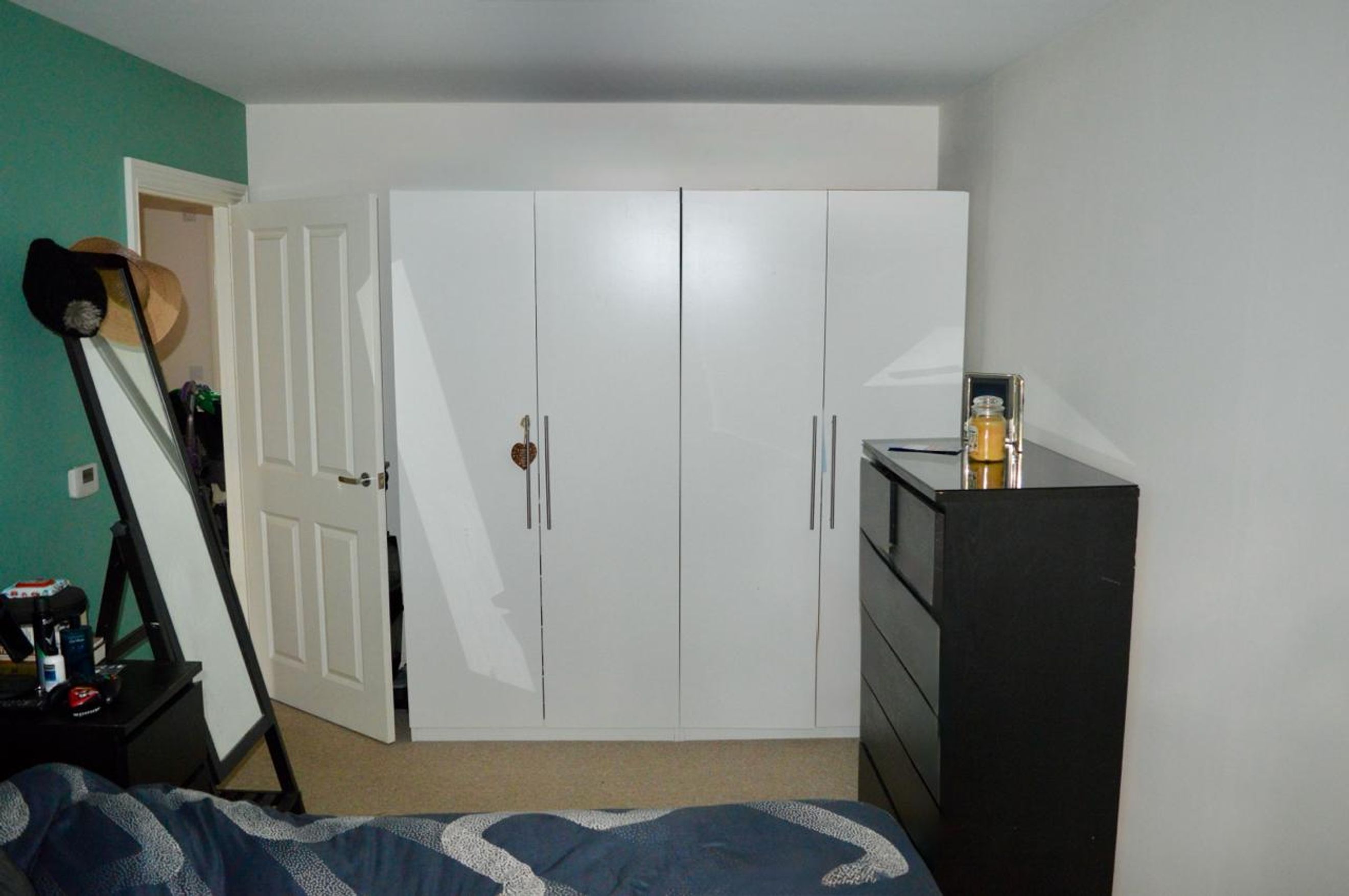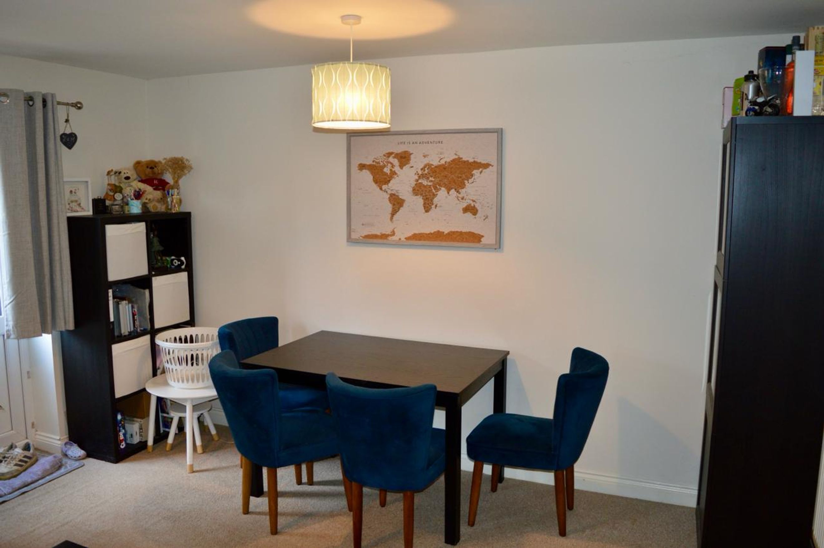 Step inside to find a separate living room featuring a handy storage cupboard and direct access to the private rear garden. The modern kitchen is well-equipped with ample storage and integrated appliances including a dishwasher, fridge freezer, oven, hob, and extractor fan.