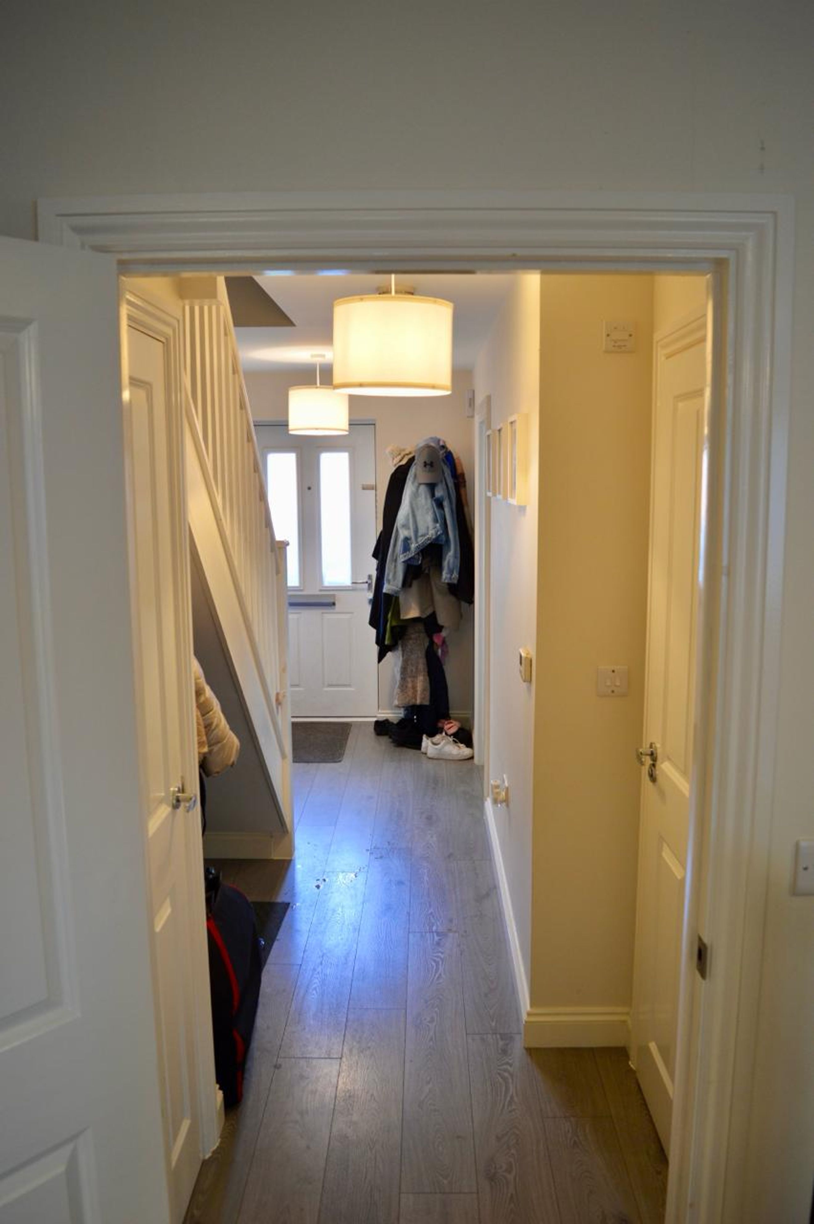 This home also features a downstairs cloakroom, an understairs storage cupboard, and a welcoming entrance hallway.