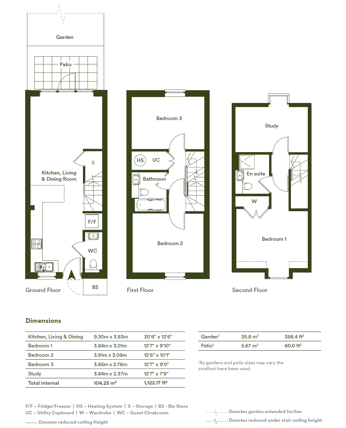 3 bedroom, 2 bathroom over 3 floor providing 104 sq m of internal space.