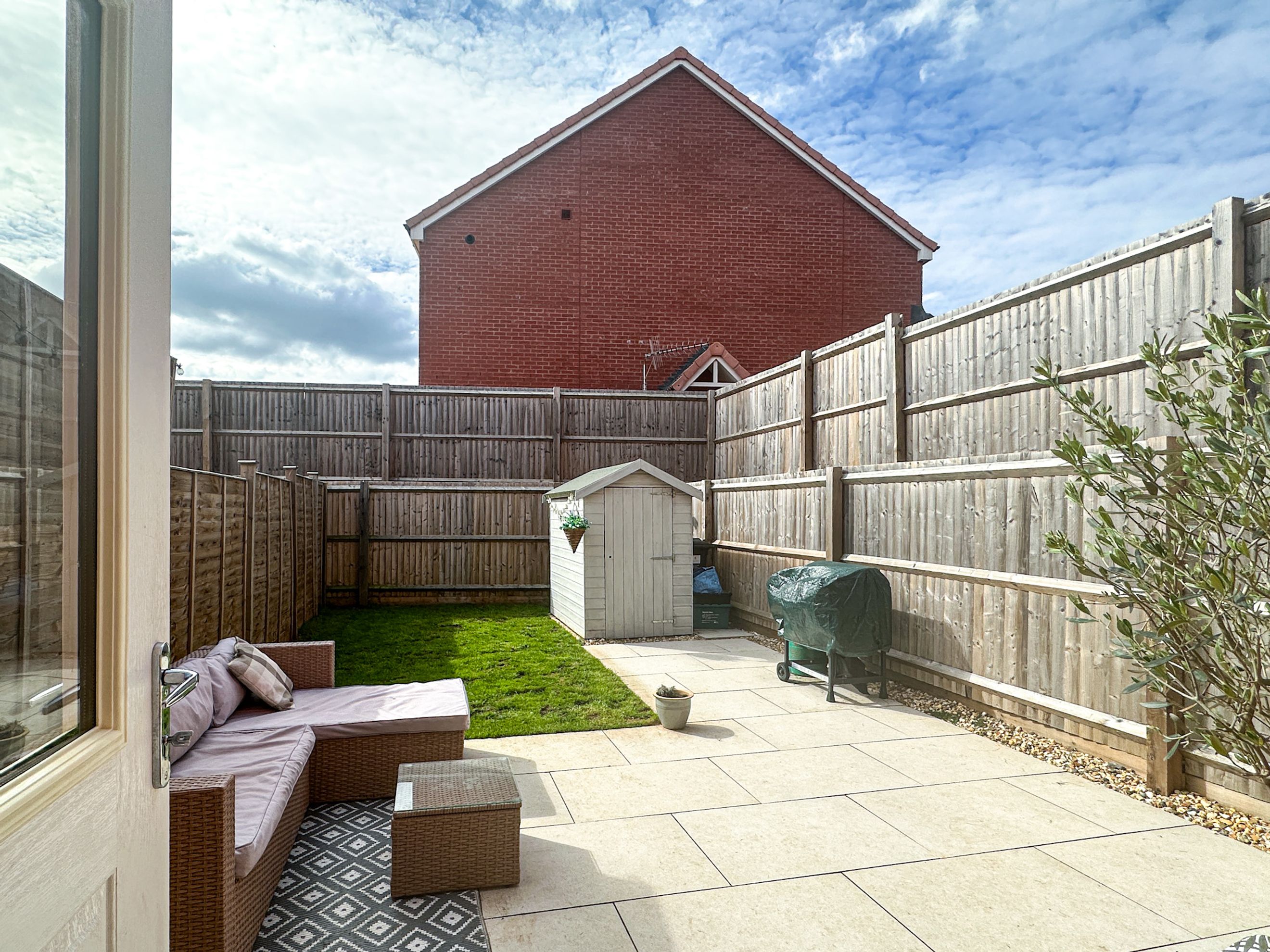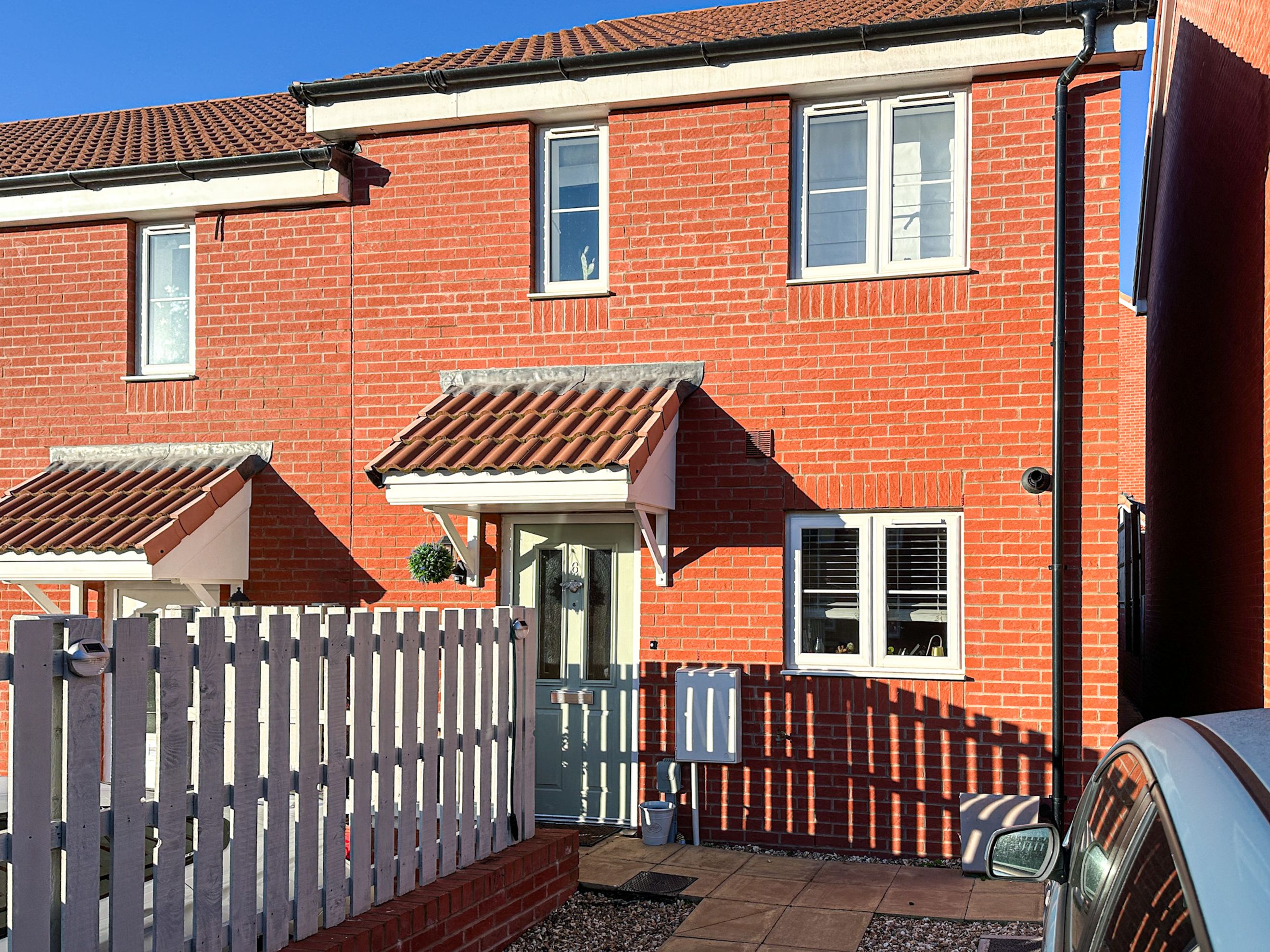 This well-presented two-bedroom end-of-terrace home offers the perfect balance of contemporary living and a semi-rural feel, with open fields and countryside walks just moments away. On the ground floor, the property features a stylish kitchen/dining room fitted with modern units and appliances, as well as a spacious living room to the rear. Flooded with natural light, the living space provides direct access to the rear garden. For everyday convenience, there is also a downstairs WC. Upstairs, there are two generously sized double bedrooms and a family bathroom. The garden offers a large patio area, well-kept lawn and a lockable shed.