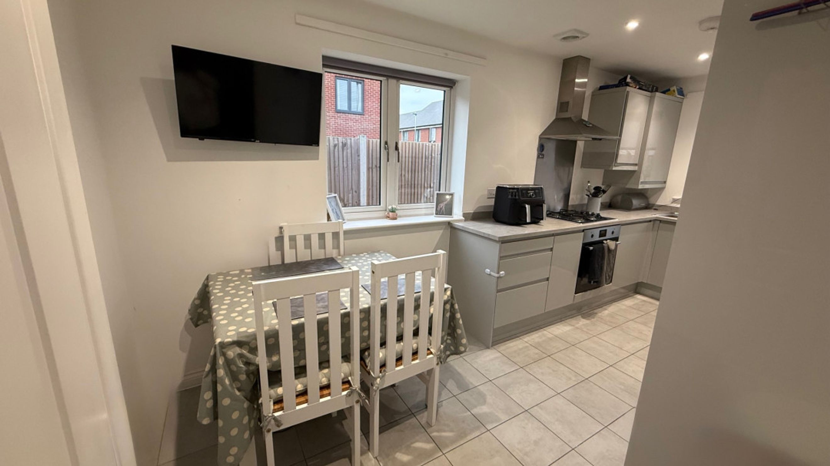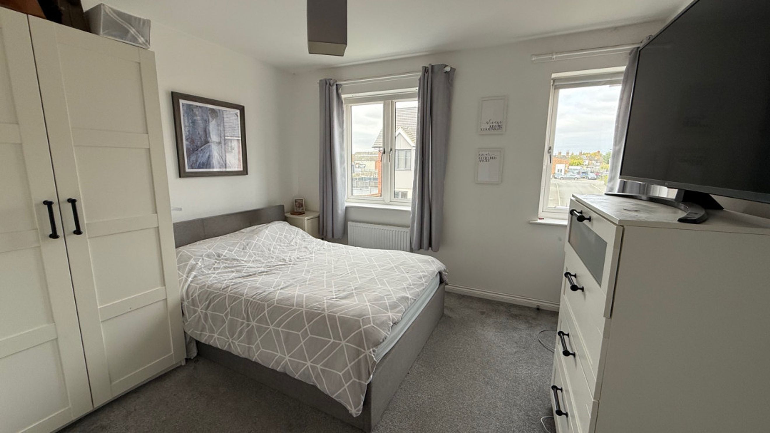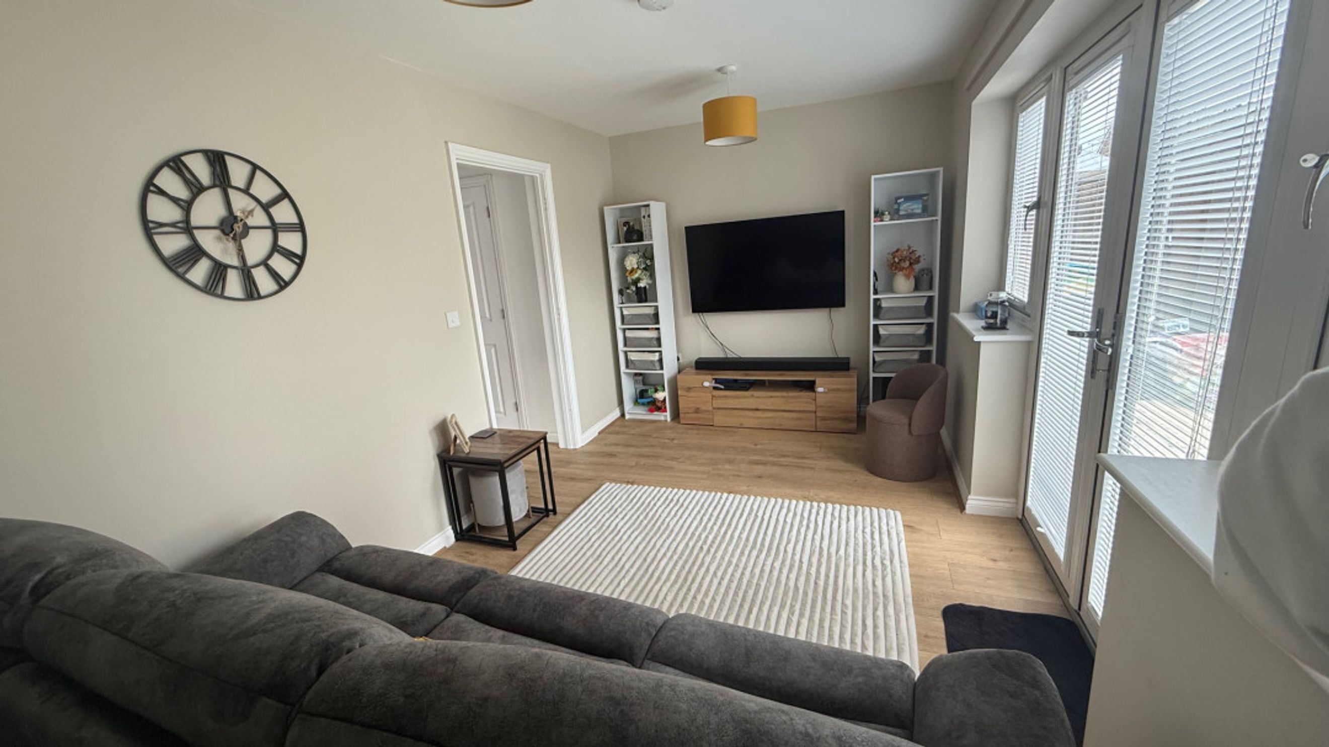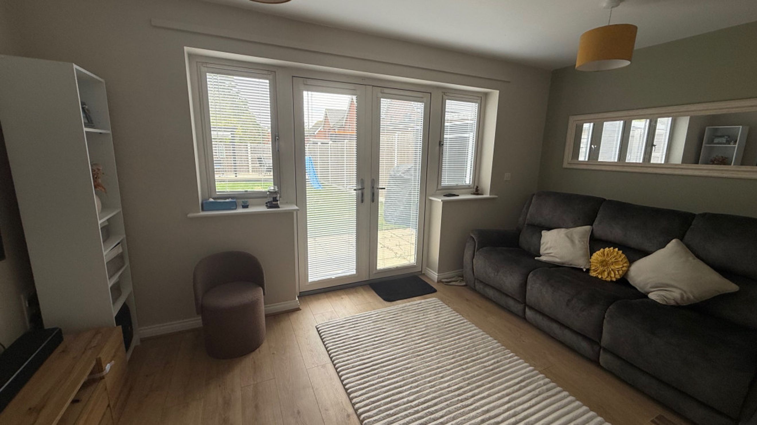 Lounge Patio doors, Television point, Laminate flooring;